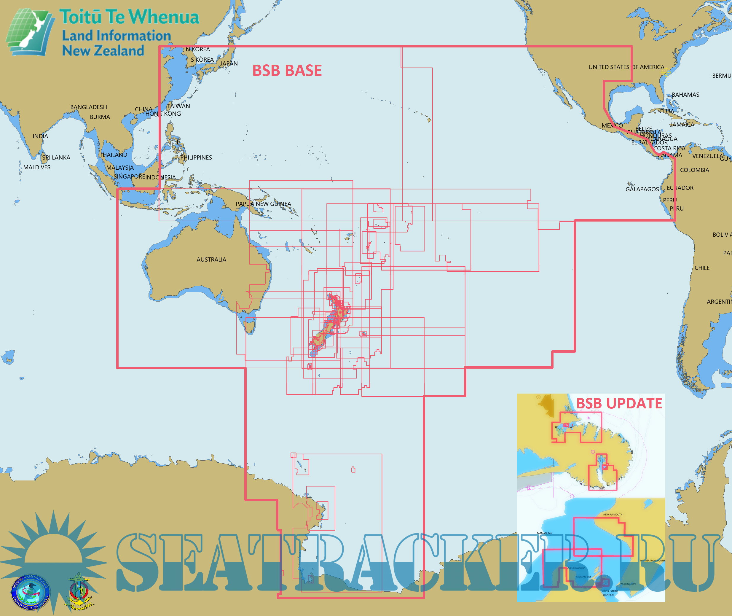 Description: NZMariner – Official Raster Navigational Charts BSB format as an annual chart base file plus a monthly cumulative chart update file of corrections published in Notices to Mariners.
