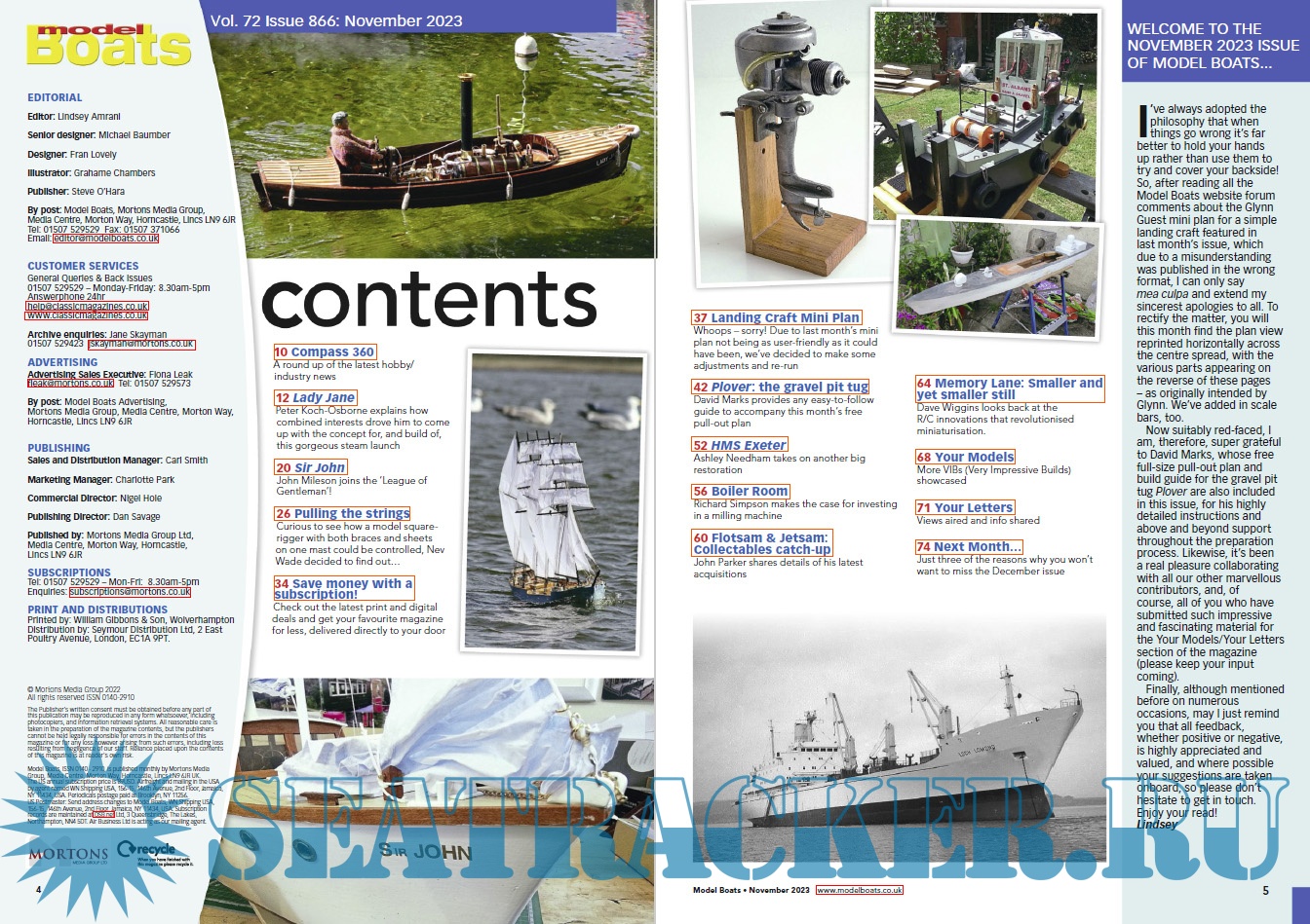 Description: Model Boats magazine is a practical and informative read for those with a love for the hobby. It covers the latest news and views from the various clubs and associations around the country, useful hints, tips and step by step guides for those interested in the art of constructing a model boat as well as tests and recommendations of new boats and tools. Floating along behind these are great special features examining in depth different models from narrowboat to destroyer!