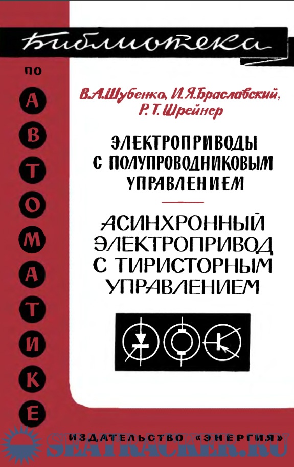 Год выпуска: 1967 Язык: русский Автор: В. А. Шубенко и др. Жанр: Техническая литература Издательство: Энергия Издание: Библиотека по автоматике. Выпуск 237 Формат: DjVu Качество: Отсканированные страницы Количество страниц: 98 Описание: Книга посвящена некоторым направлениям в развитии управляемых тиристорных асинхронных электроприводов. Изложены принципы построения тиристорных силовых следящих асинхронных электроприводов с цифровым программным управлением, методика расчета необходимых характеристик и параметров позиционных следящих систем. Освещены некоторые вопросы построения частотно-управляемых асинхронных электроприводов. Книга рассчитана на инженерно-технических работников, специализирующихся в области автоматизированного электропривода, и может быть полезной студентам соответствующих специальностей.