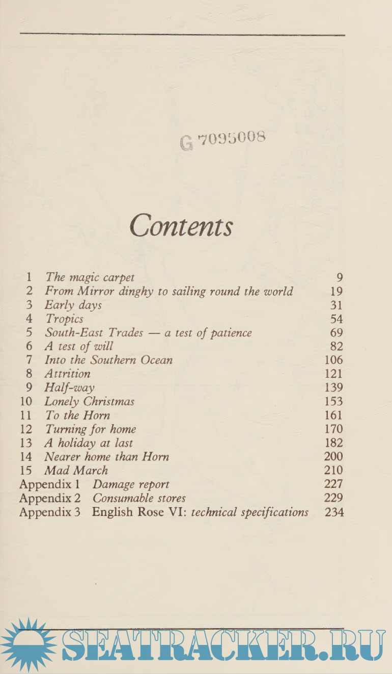 Description: He had sailed singlehanded across the Atlantic, rowed across with a companion and competed in the Whitbread Round-the-World Yacht Race. In the summer of 1983, John Ridgeway sought another challenge. With Briggs, the sailing instructor at his School of Adventure in Scotland, he would circle the globe without touching land; the target, to set a record for fastest passage. They departed from Ardmore, Scotland, on September 1, on the school's 57-foot ketch, English Rose VI. Each man kept a diary; the reader follows the day-by-day progress of the voyage. Briggs's running account of ship maintenance will be of special interest to long-distance sailors; for the older and more experienced Ridgeway, the journey was a period of self-examination. The pair endured physical and mental hardships, extremes of weatherfrustrating calms, violent storms, one near-capsize. In March 1984, English Rose VI and its crew returned to Ardmore after a record 203-day passage. For all sailors, and for landlubbers who enjoy adventure.