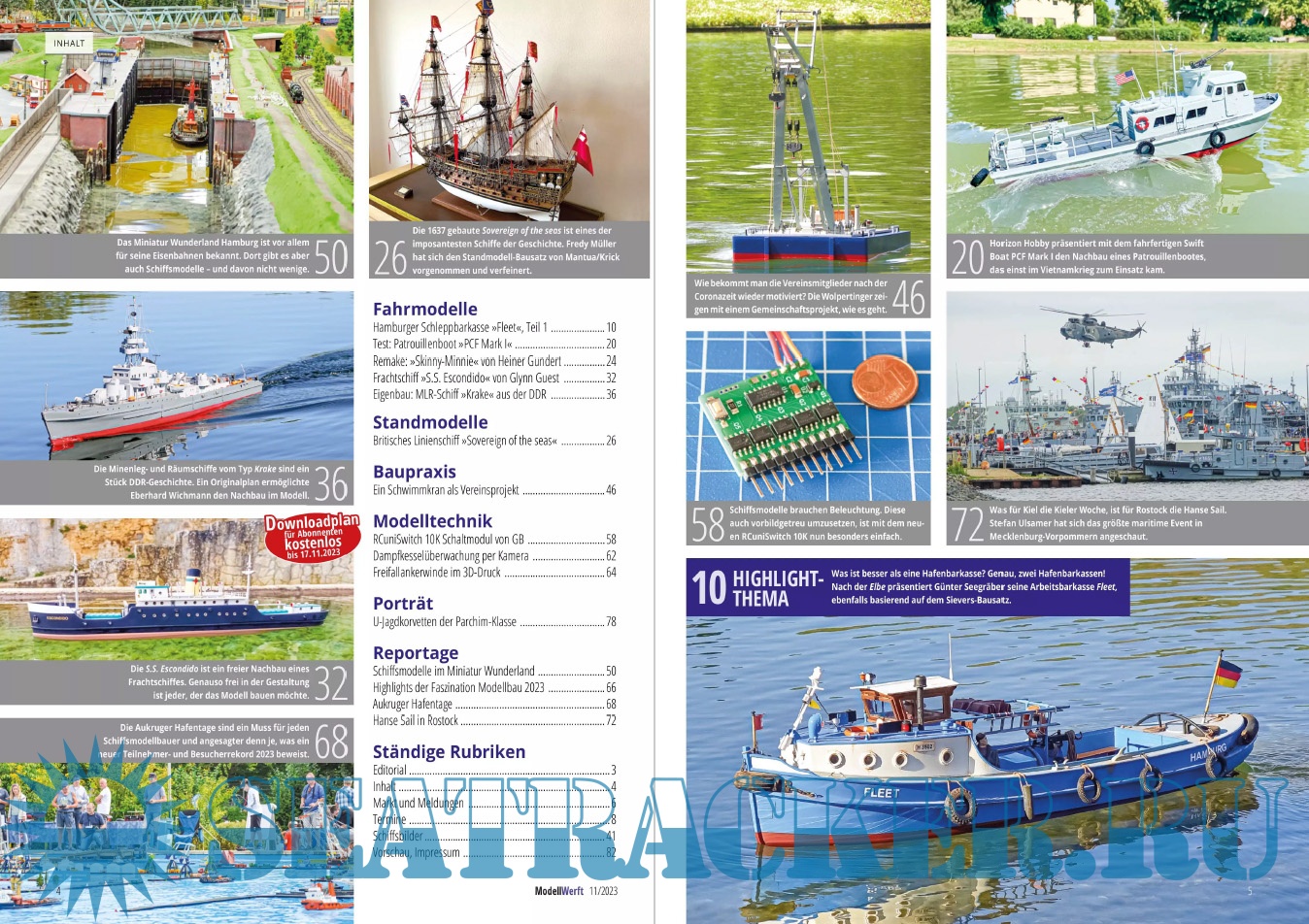 Year: 2023 Language: german Author: Eric Schafenrort (Redaktor) Genre: Periodical (magazine) Format: PDF Quality: eBook Pages count: 84 Description: Das führende Fachmagazin für Schiffsmodellbauer. Egal ob Stand- oder Fahrmodell, ob kleines Segelboot oder gigantisches Kreuzfahrtschiff. Die Modellwerft informiert über Neuheiten, hilft mit Bautipps und fasziniert mit besonderen Reportagen.