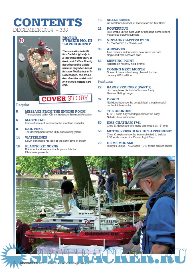 Year: 2014 Language: english Author: Traplet Publications Genre: Periodical (magazine) Edition: 2014-12 Format: PDF Quality: eBook Pages count: 84 Description: Marine Modeling International - this is a well estabilished UK title and chief rival to Model Boats.These magazines are full of feature articles covering kit reviews, scratch built specialist models and reports from major maritime-related shows from around the world.