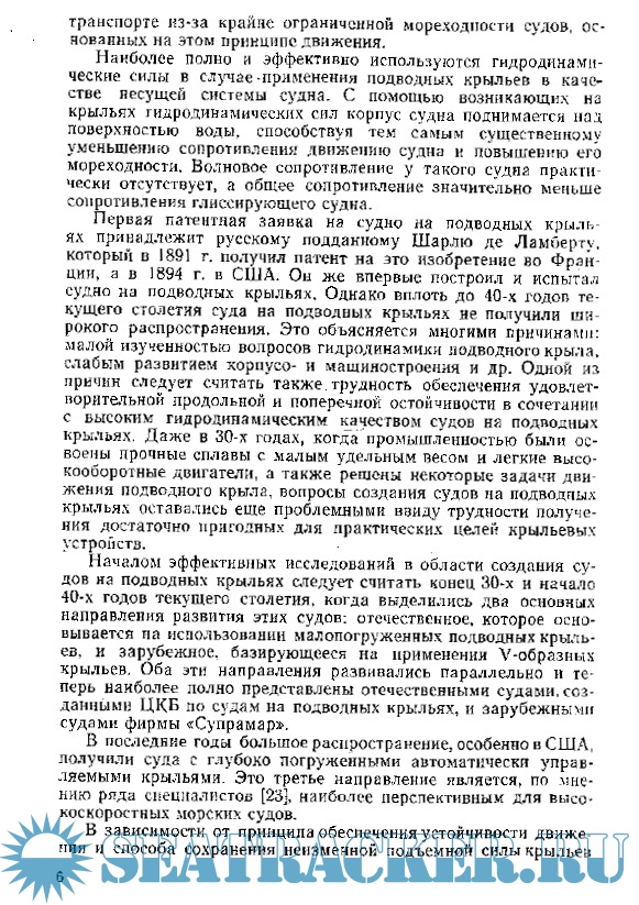 Год выпуска: 1967 Язык: русский Автор: Зайцев Н.А., Маскалик А.И. Жанр: Техническая литература Издательство: Судостроение Формат: PDF Качество: Отсканированные страницы Количество страниц: 186 Описание: В книге систематизированы материалы по проектированию, постройке и эксплуатации отечественных судов на подводных крыльях, созданных коллективом конструкторов под руководством доктора технических наук Р.Е.Алексеева. В книге описаны особенности проектирования речных судов на малопогруженных подводных крыльях ("Ракета", "Метеор", "Спутник"), мелкосидящих судов с частично погруженными гребными винтами ("Ракета-М", "Беларусь"), судов с водометными движителями ("Чайка", "Беларусь-В", "Буревестник"), морских судов ("Комета", "Вихрь"), катеров ("Волга", "Чайка" и др.). Рассмотрены вопросы гидродинамики судов на подводных крыльях, а также их эксплуатационно-экономические показатели. Книга предназначена для специалистов, работающих в области проектирования и постройки судов на подводных крыльях, а также может быть использована студентами кораблестроительных вузов и учащим
