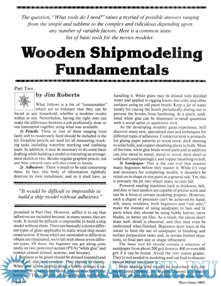 Year: 1987 Language: english Author: Scottie Dayton (Editor) Genre: Periodical (magazine) Edition: 1987-03 Format: PDF Quality: Scanned pages Pages count: 100 Description: Seaway is the home port for Seaways Ships in Scale magazine, the leading workshop and research magazine for the ship modeler. In the magazine we explore all levels of modeling experience, all types of ships, all kinds of models, all historical eras and all construction materials