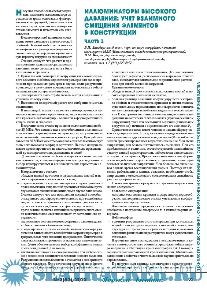Описание: Информационные, аналитические, научно-технические и исторические статьи по морской технике и технологиям, экологической безопасности судостроения и судоходства, освоению океана и шельфа, безопасности мореплавания, истории флота и мореплаваний, морскому бизнесу и праву.