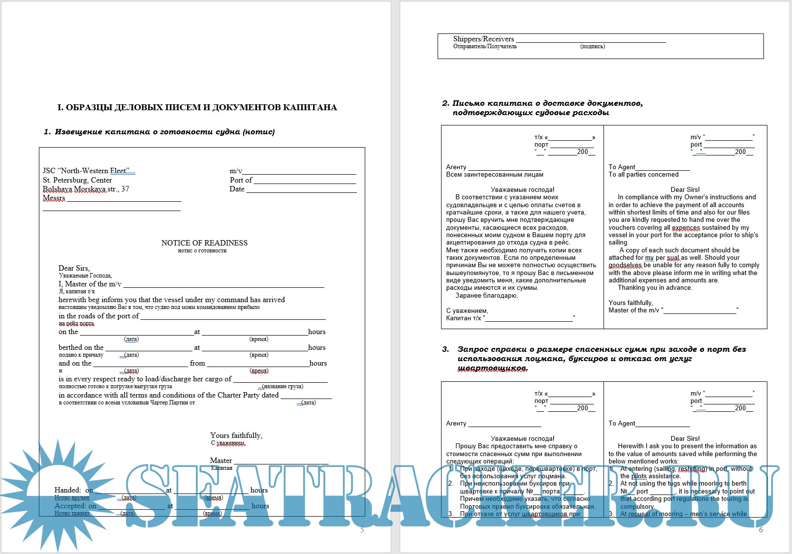 Образцы деловых писем и документов капитана (образцы писем-заявок, заказов, протестов + словарик)