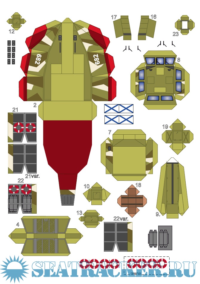 13 листов цветных выкроек и инструкций для создания модели из бумаги патрульного катера РАПТОР ''Юнармеец Балтики''Скриншоты