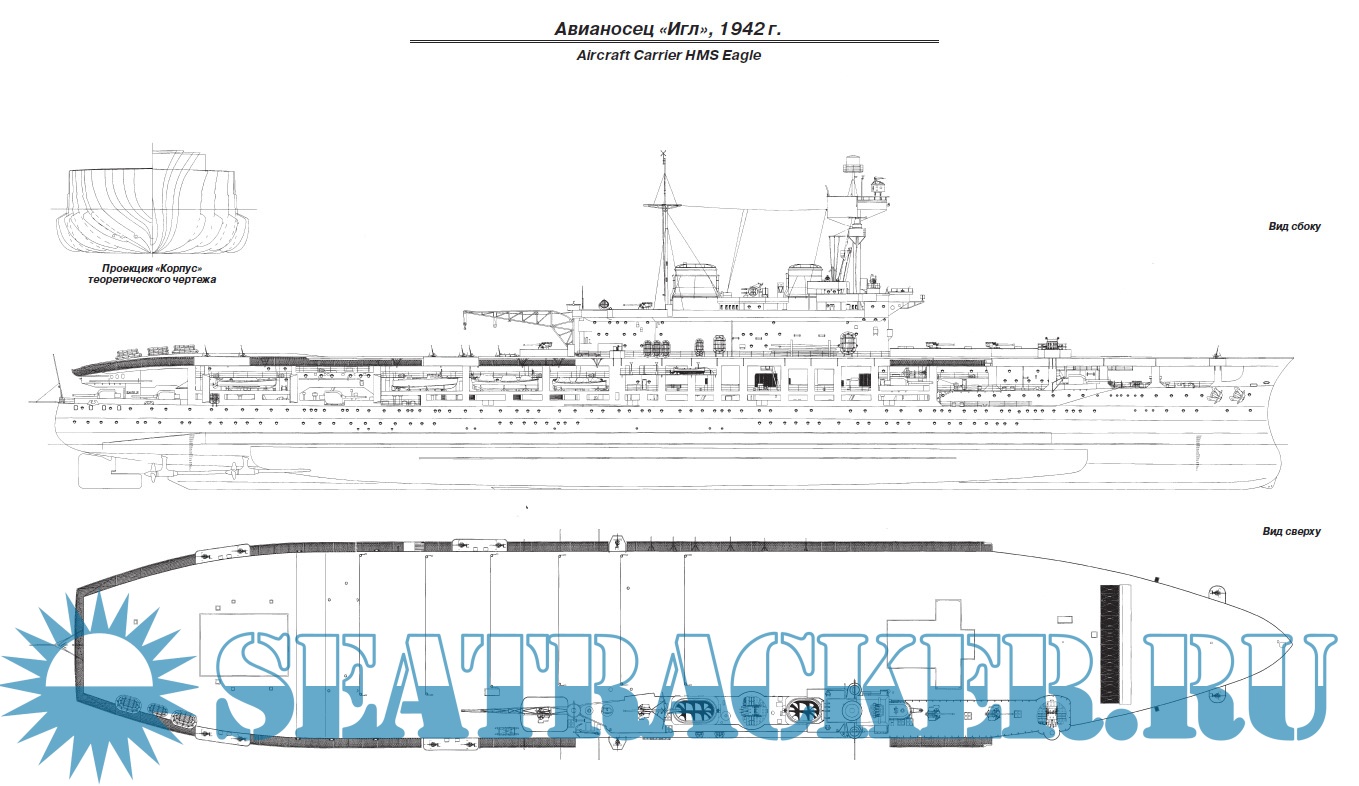 Адмиралтейством и перестроен в авианосец, став первым кораблем данного класса, созданным по схеме, признанной классической – со сплошной полетной палубой и островной надстройкой, сдвинутой к правому борту. Многие из примененных на нем технических решений, пусть и не всегда выполненных оптимальным образом, были повторены на последующих кораблях, и не только британских.