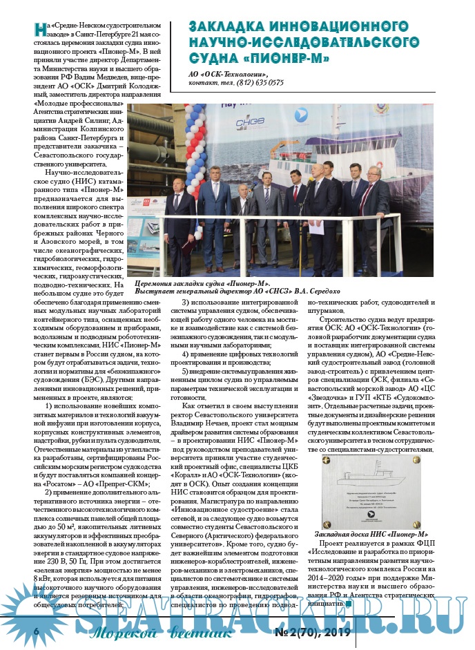 Описание: Информационные, аналитические, научно-технические и исторические статьи по морской технике и технологиям, экологической безопасности судостроения и судоходства, освоению океана и шельфа, безопасности мореплавания, истории флота и мореплаваний, морскому бизнесу и праву.