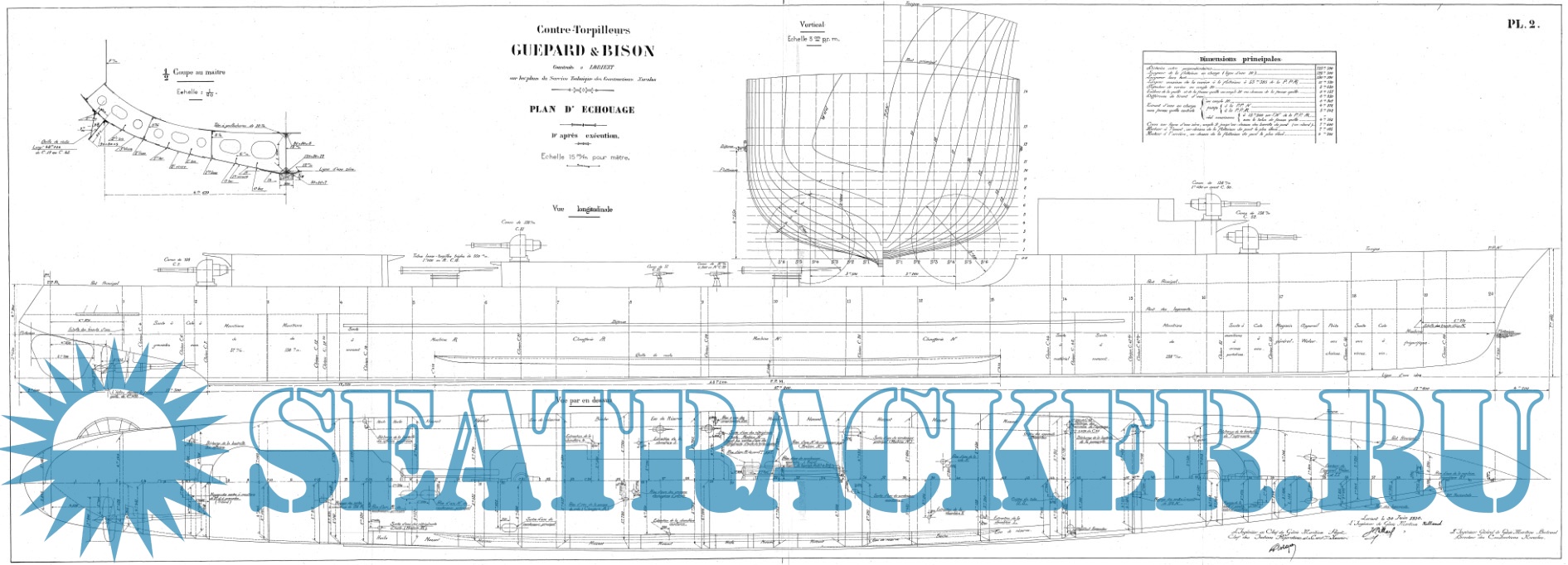 Архивные чертежи французского контр-миноносца GUEPARD 1928 год