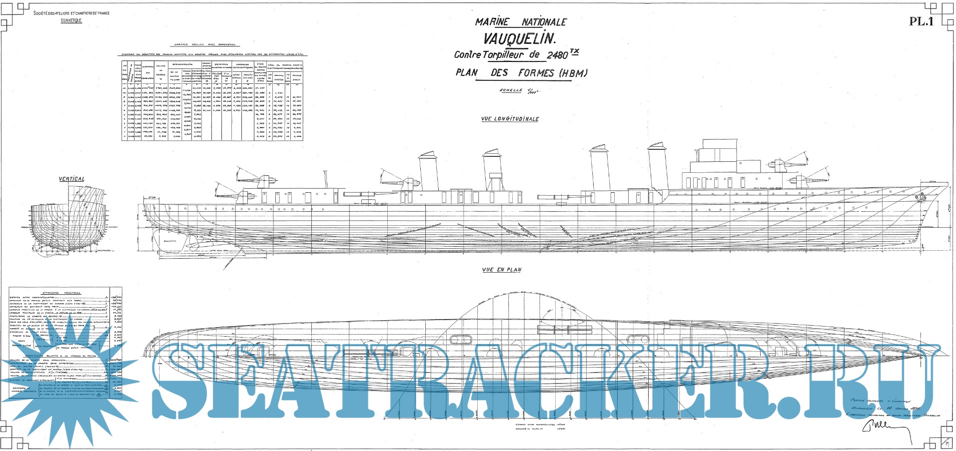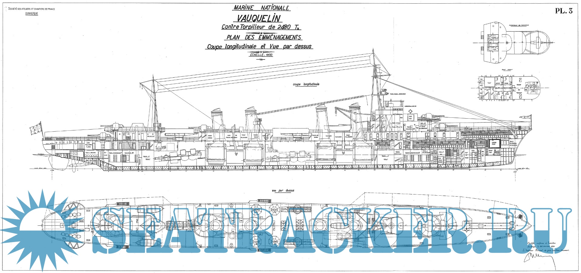 Архивные чертежи французского контр-миноносца VAUQUELIN 1931 год