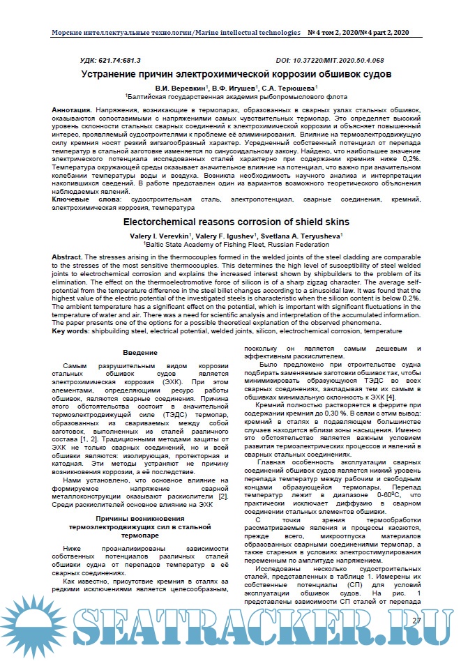 Морские интеллектуальные технологии 2020 № 4(50) Tом 2