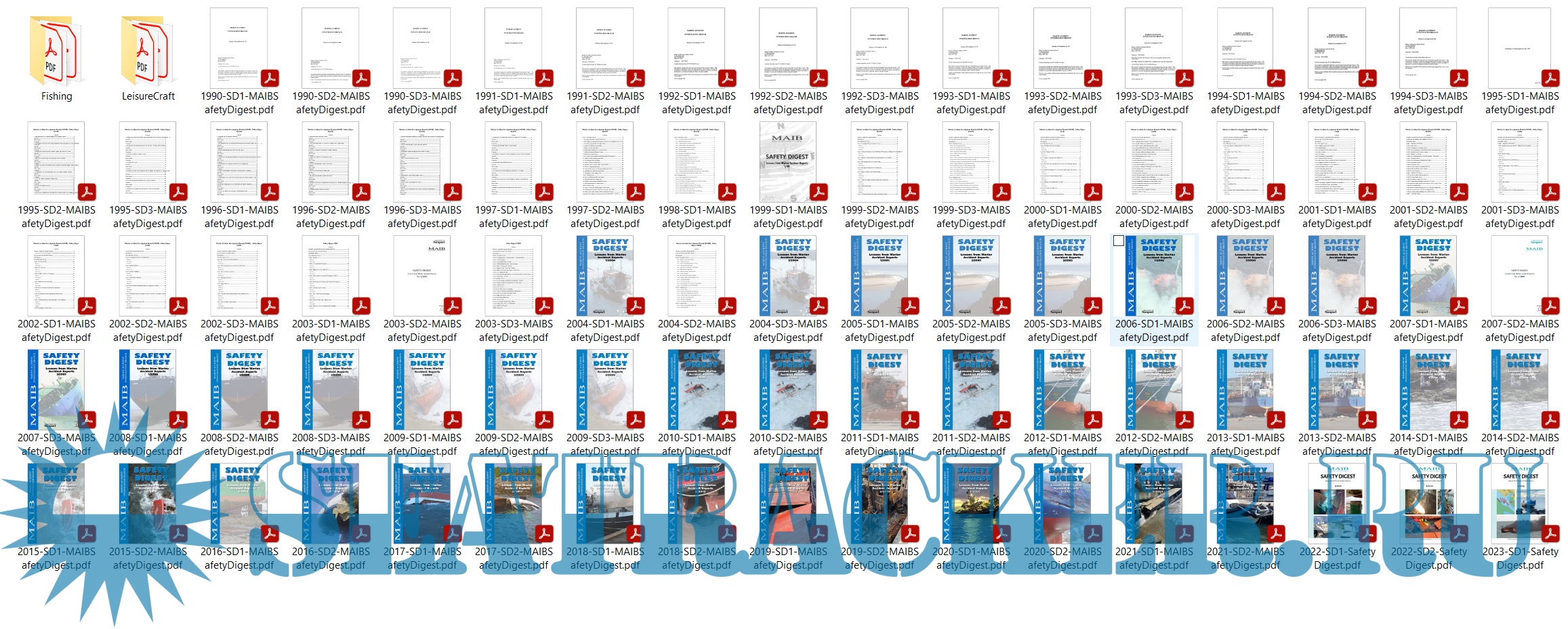 Year: 1990-2025 Language: english Author: MAIB Genre: - Publisher: MAIB Format: PDF Quality: eBook Pages count: 1000+ Description: Safety digests are collections of anonymous articles involving vessels from the merchant, fishing and small craft sectors which draws the attention of the marine community to some of the lessons arising from a variety of accidents. Compilation editions have been produced for the fishing industry and recreational craft sector. Bonus: Fishing Safety Digest 2000-2010,2014, LeisureCraft Safety Digest 2004,2008 Upd. 06.2023: Added Safety Digest numbers for 2016-2023 + Fishing/LeisureCraft Upd. 08.2024: Attached Safety Digest numbers SD2-2023 and SD1-2024 Upd. 06.2025: Attached Safety Digest numbers SD2-2024 and SD1-2025