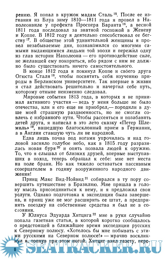 Описание: Автор - выдающийся немецкий писатель и естествоиспытатель - рассказывает о кругосветном плавании на борту русского брига «Рюрик» (1815-1818) под командованием капитана О. Коцебу. В своих путевых заметках он подробно описывает нравы и обычаи коренных жителей островов Тихого океана, рассказывает о встречах на Камчатке, Аляске, Алеутских, Сандвичевых и других островах. В яркой художественной форме он рисует картины повседневной жизни экспедиции, героическую борьбу с трудностями ее участников.