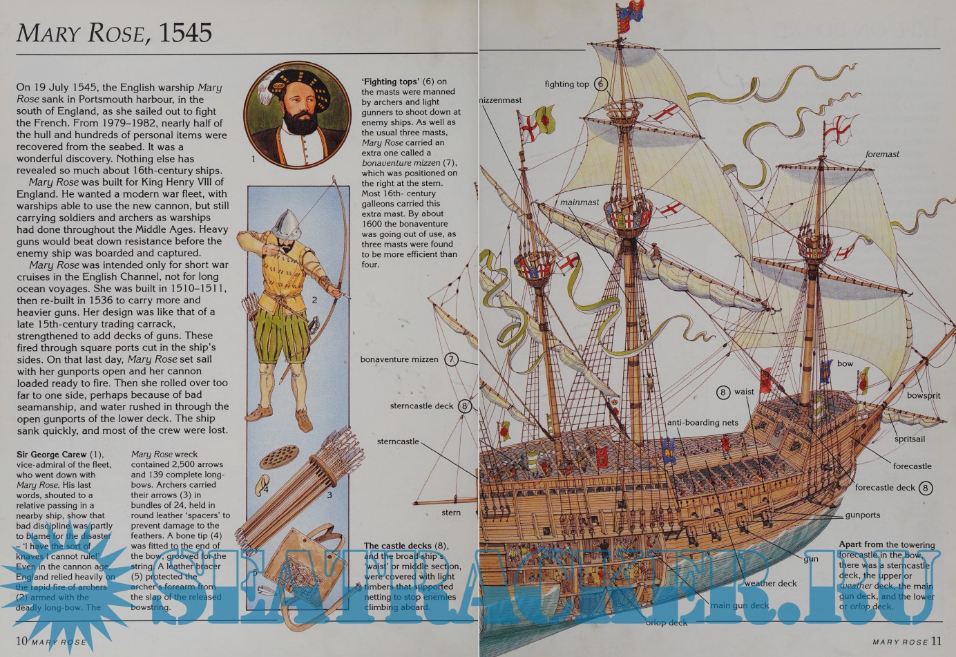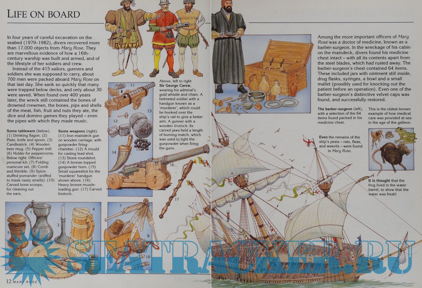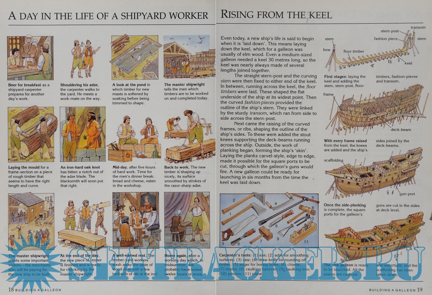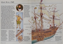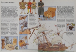 Description: Full-color cutaway illustrations, double-page spreads, and an informative text explore what life would have been like aboard a sixteenth-century Spanish galleon, describing how such ships were built and their role in history.