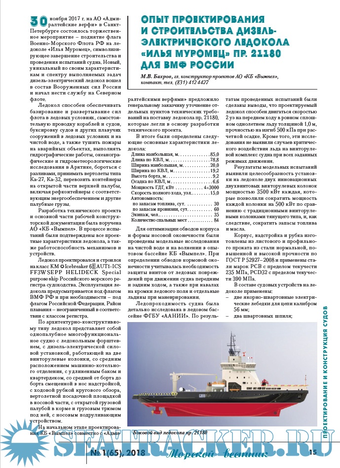 Описание: Информационные, аналитические, научно-технические и исторические статьи по морской технике и технологиям, экологической безопасности судостроения и судоходства, освоению океана и шельфа, безопасности мореплавания, истории флота и мореплаваний, морскому бизнесу и праву.