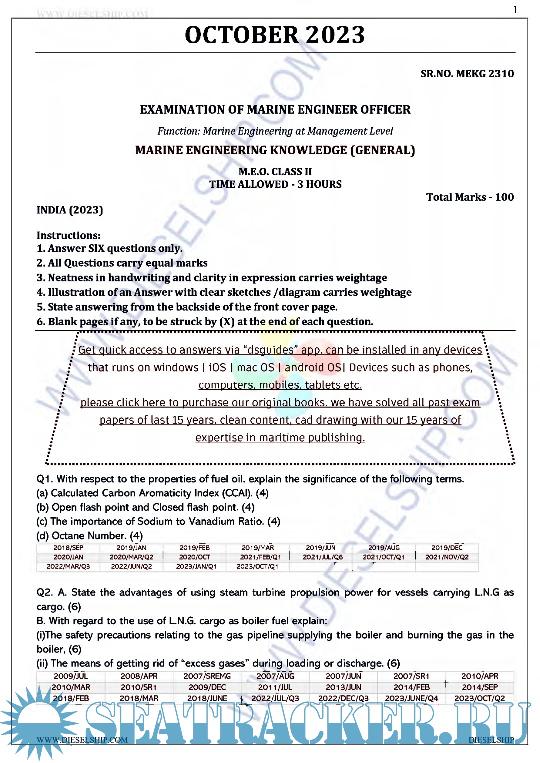 Description: M.E.O. Class II Question Paper set for Mercantile Marine Department (MMD), D.G. Shipping India Exams.