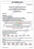 Question Paper Set for Marine Engineering Officer (M.E.O.) Class II (October 2023) MMD Examinations, India