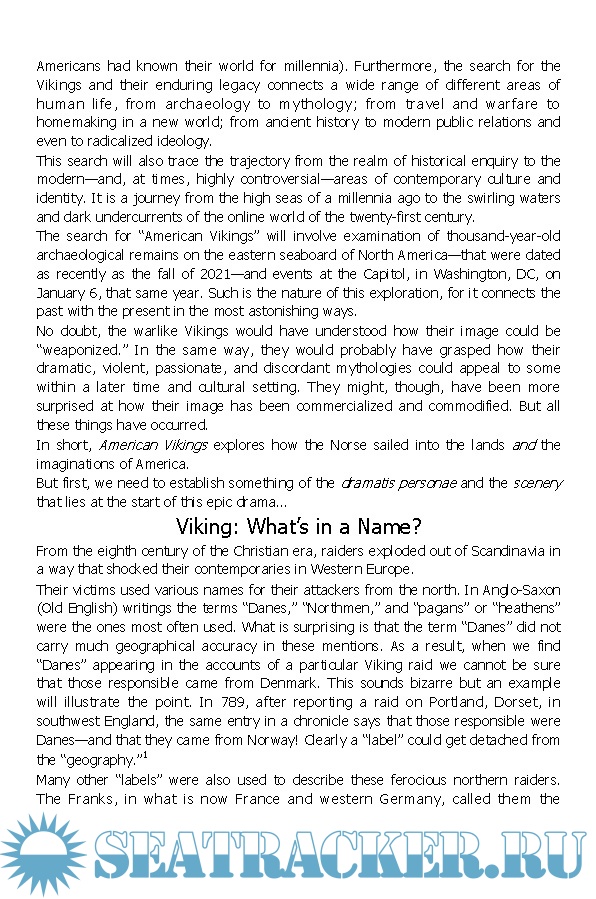 Year: 2023 Language: english Author: Martyn Whittock Genre: History Publisher: Pegasus Books Format: EPUB Quality: eBook Pages count: 201 Description: A vivid and illuminating new history—separate fact from fiction, myth from legend—exploring the early Vikings settlements in North America. Vikings are an enduring subject of fascination. The combination of adventure, mythology, violence, and exploration continues to grip our attention. As a result, for more than a millennium the Vikings have traveled far and wide, not least across the turbulent seas of our minds and imaginations. The geographical reach of the Norse was extraordinary. For centuries medieval sagas, first recorded in Iceland, claimed that Vikings reached North America around the year 1000. This book explores that claim, separating fact from fiction and myth from mischief, to assess the enduring legacy of this claim in America. The search for "American Vikings" connects a vast range of different areas; from the latest archaeological evidence for their actual settlement in North America to the myth-making of nineteenth-century Scandinavian pioneers in the Midwest; and from ancient adventurers to the political ideologies in the twenty-first century. It is a journey from the high seas of a millennium ago to the swirling waters and dark undercurrents of the online world of today. Additional info: AudioBook: https://seatracker.club/viewtopic...?p=100283#100283