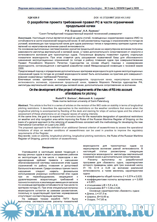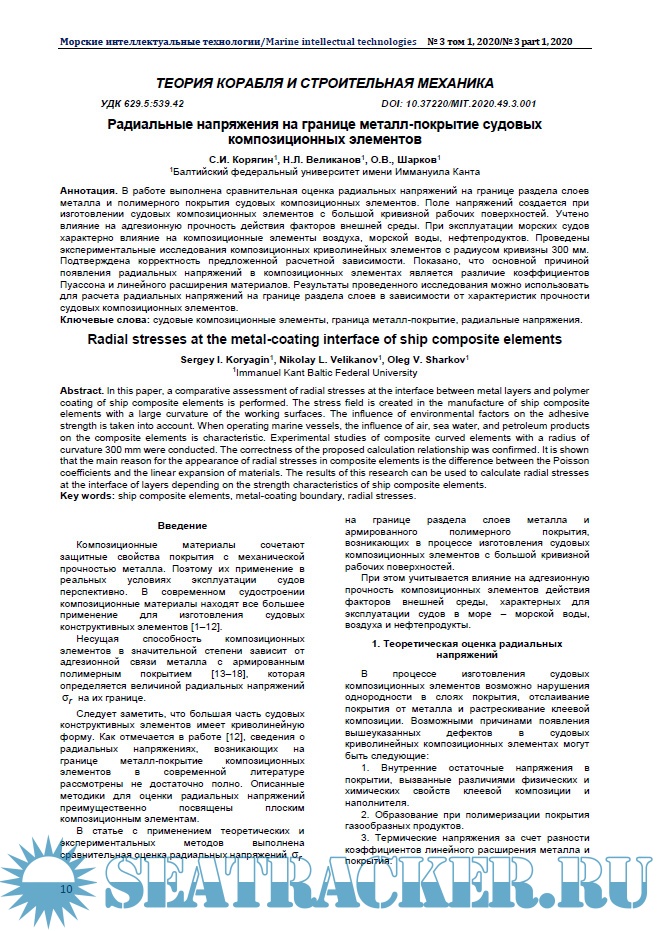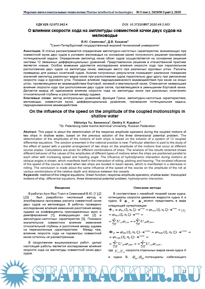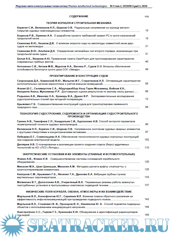 Морские интеллектуальные технологии 2020 №3 (49) Tом 1