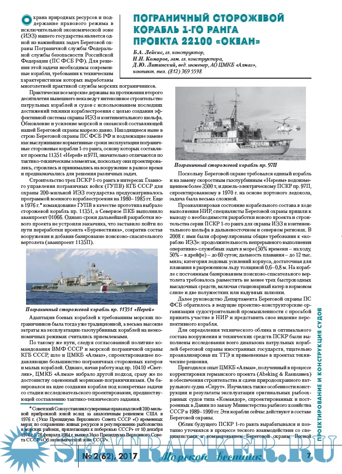 Описание: Информационные, аналитические, научно-технические и исторические статьи по морской технике и технологиям, экологической безопасности судостроения и судоходства, освоению океана и шельфа, безопасности мореплавания, истории флота и мореплаваний, морскому бизнесу и праву.
