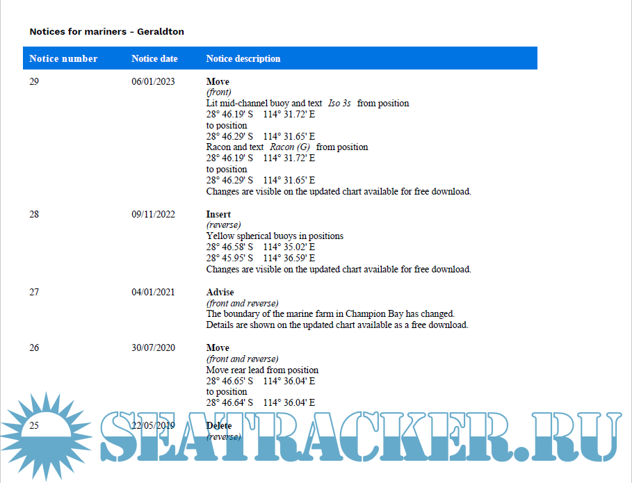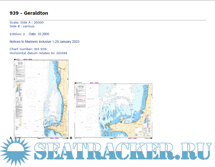 Description: Nautical Charts (PDF) and RNC (BSB) of the Western Australian coastline with latest Notices to Mariners for these charts by Department of Transport, october 2023.