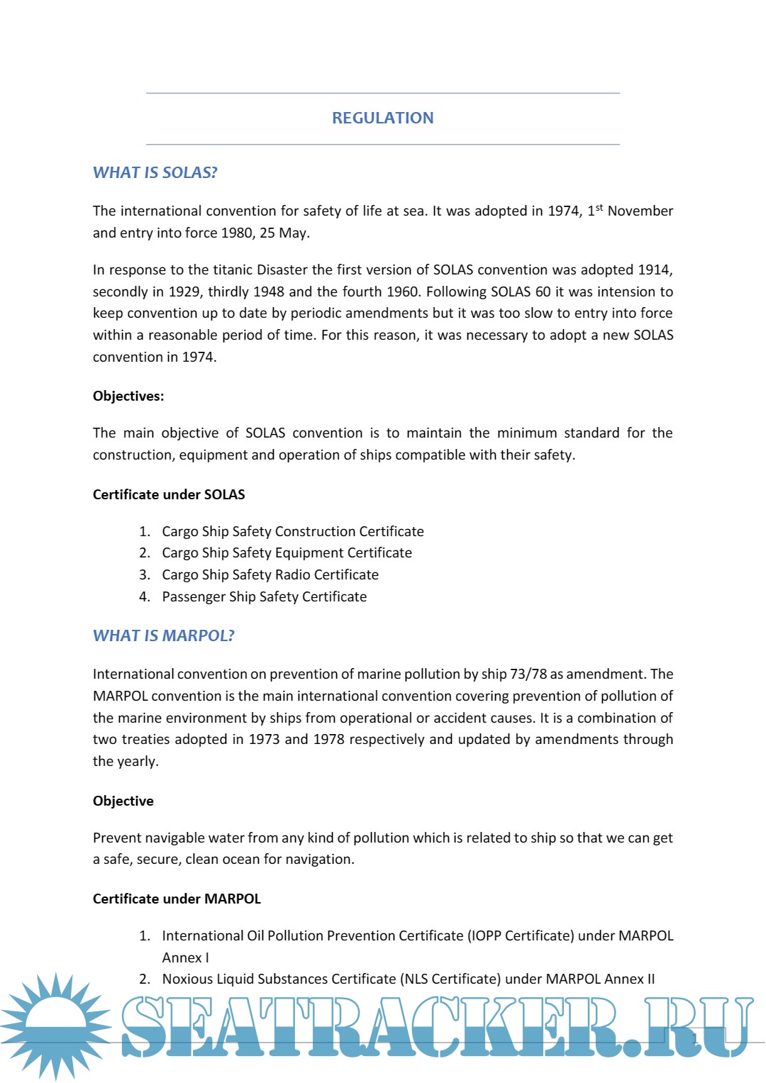 1) Regulations