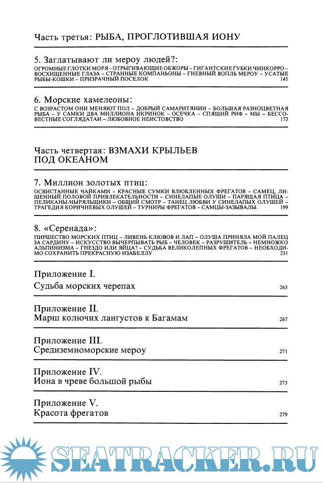 Описание: Книга разделена на четыре части, в каждой из которых живо и интересно рассказывается об акулах, лангустах, мероу и фрегатах, т.е. о представителях различных типов животного мира планеты, живущих не только в море, но и на островах.