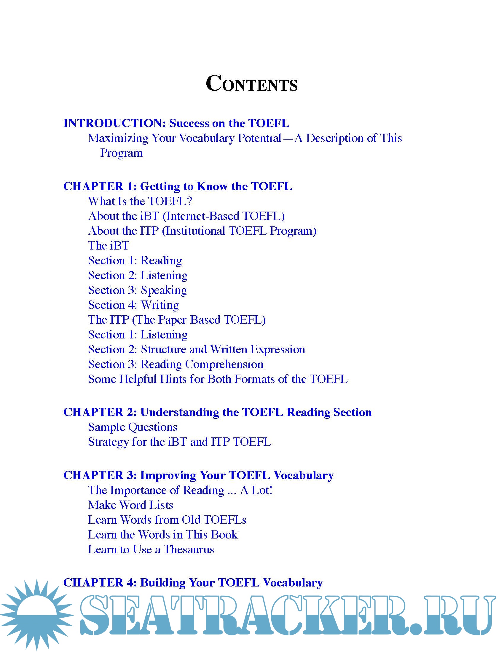 Description: Barron’s TOEFL Essential Words is designed for ESL students preparing to take the TOEFL. The book features 500 words that are seen most often on the exam.