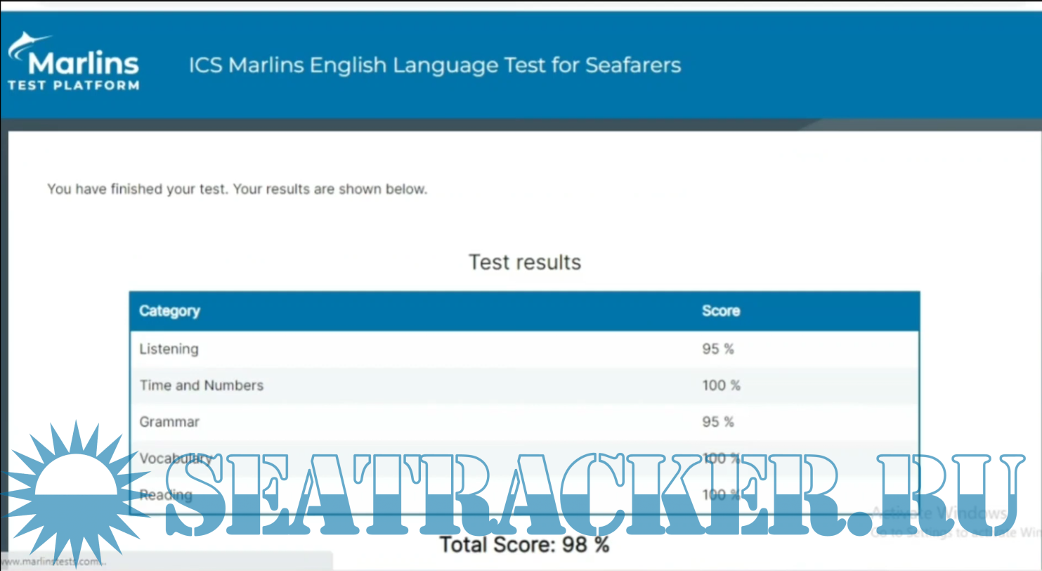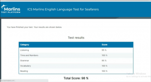 ICS Marlins English Language Test for Seafarers Video 98% November, 2023