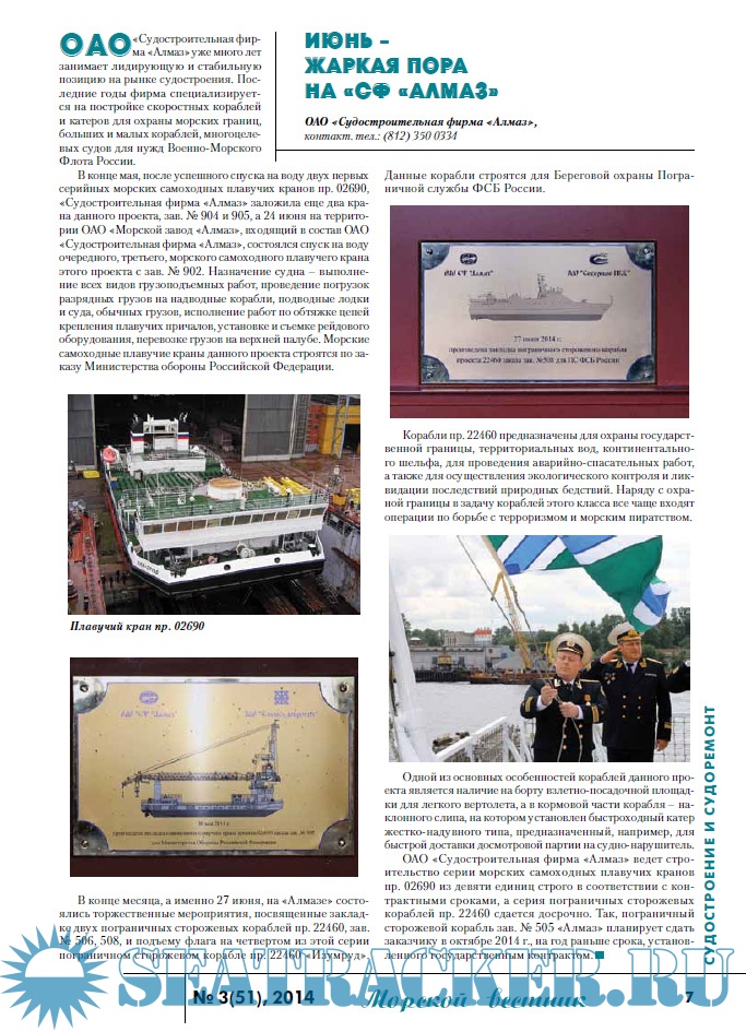 Описание: Информационные, аналитические, научно-технические и исторические статьи по морской технике и технологиям, экологической безопасности судостроения и судоходства, освоению океана и шельфа, безопасности мореплавания, истории флота и мореплаваний, морскому бизнесу и праву.