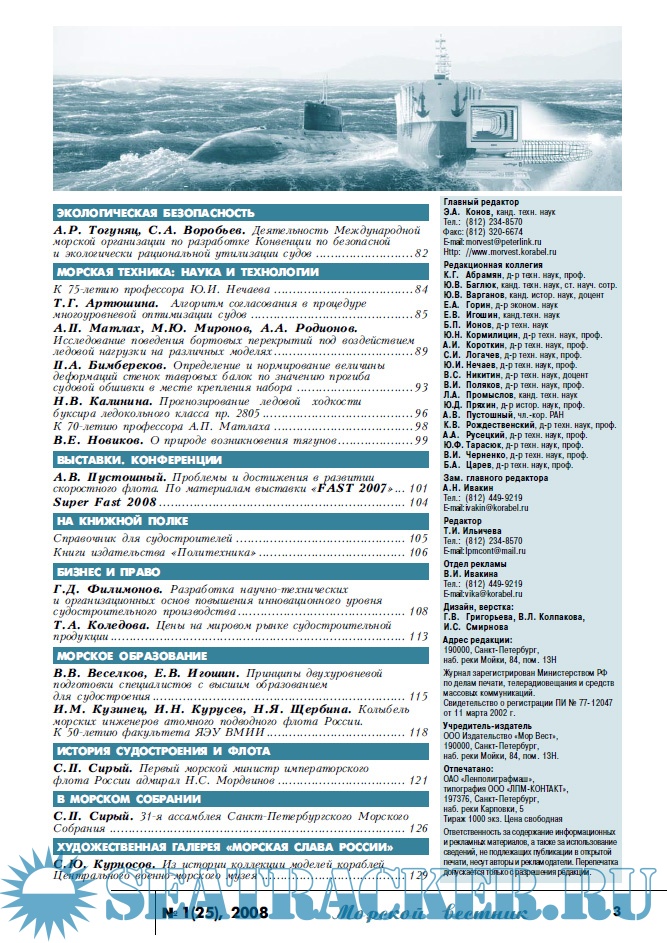 Описание: Информационные, аналитические, научно-технические и исторические статьи по морской технике и технологиям, экологической безопасности судостроения и судоходства, освоению океана и шельфа, безопасности мореплавания, истории флота и мореплаваний, морскому бизнесу и праву.