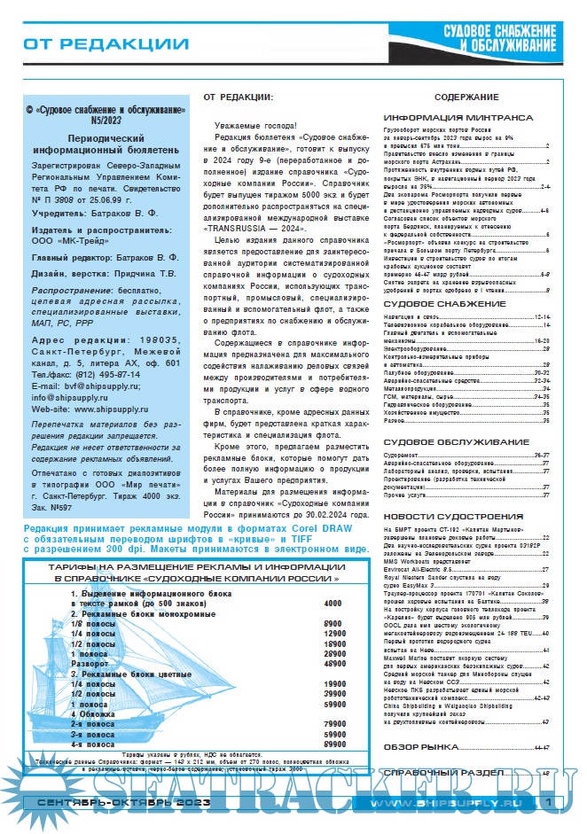 Судовое снабжение и обслуживание сентябрь-октябрь - Батраков В.Ф. (главный редактор) [2022, PDF]