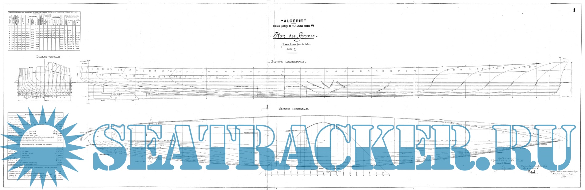 Архивные чертежи французского крейсера ALGERIE 1935 год