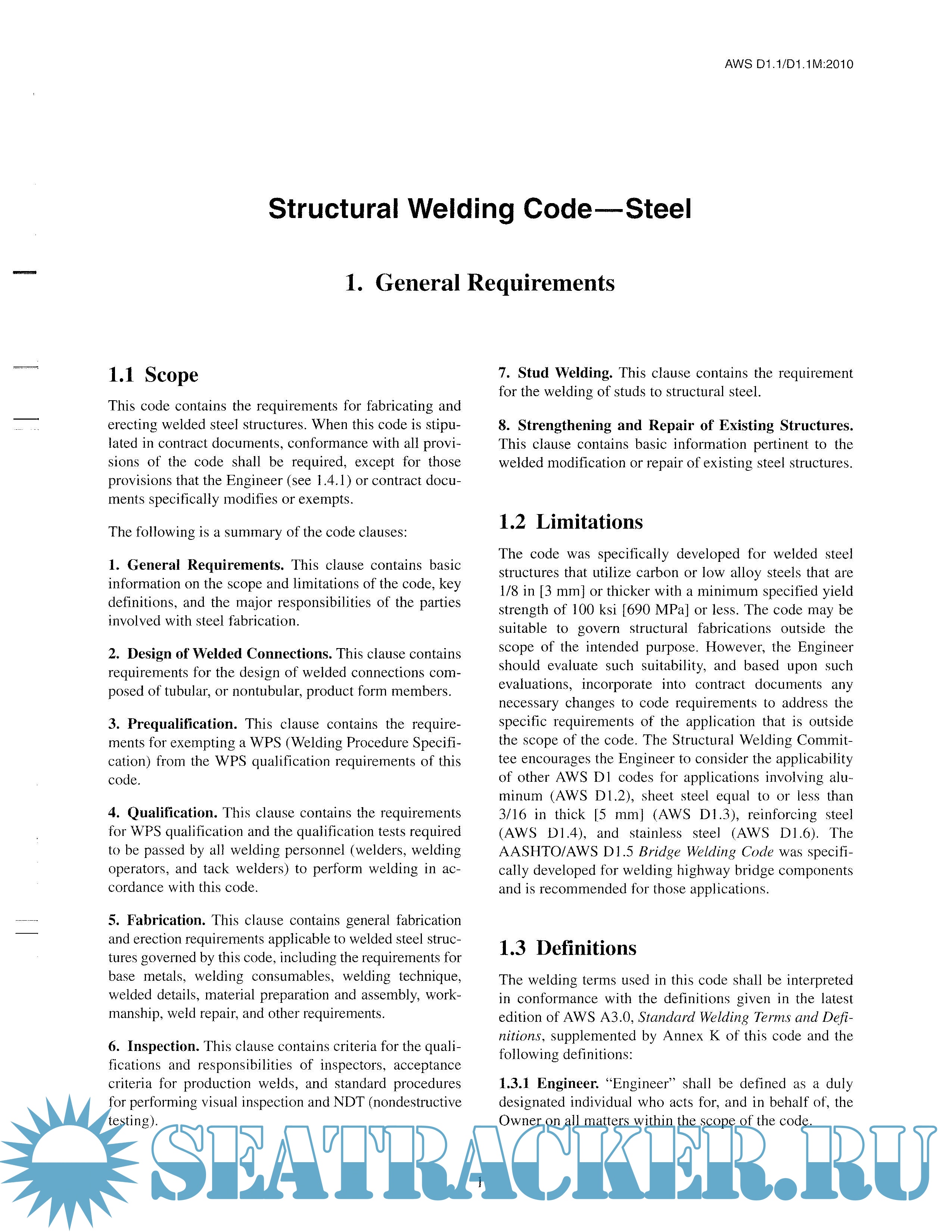 Description: This code covers the welding requirements for any type of welded structure made from the commonly used carbon and
