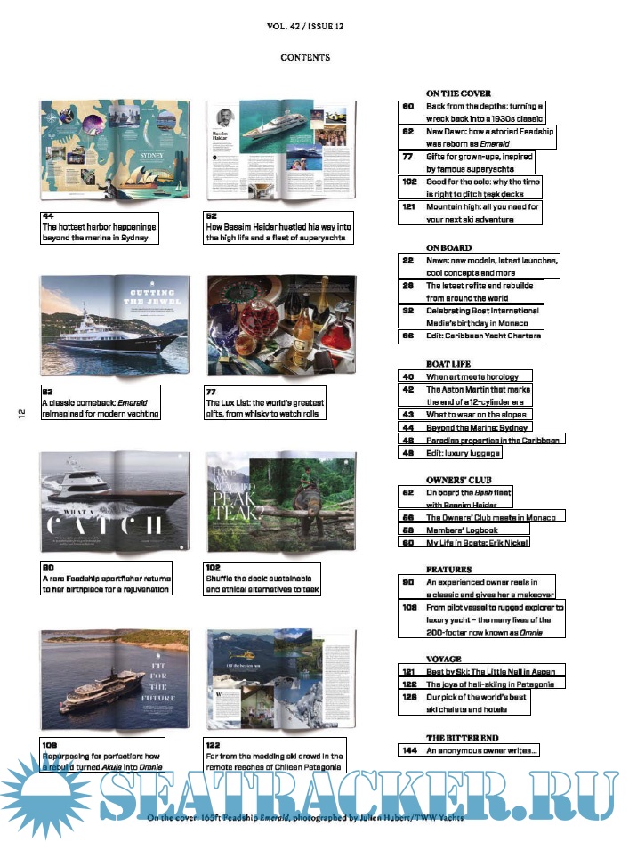 Year: 2023 Language: english Author: Stewart Campbell (Editor) Genre: Periodical (magazine) Publisher: Boat International Media Ltd. Edition: 2023-12 Format: PDF Quality: eBook Pages count: 148 Description: Boat International is the number ONE magazine in the international superyacht market. Launched in 1983 it has been the voice of record charting the superyacht industry for over 25 years and is the globally acknowledged authority in its field. The world's only monthly superyacht magazine, Boat International delivers exclusive and unrivaled coverage of power and sail yachting from the world's best journalists and photographers.