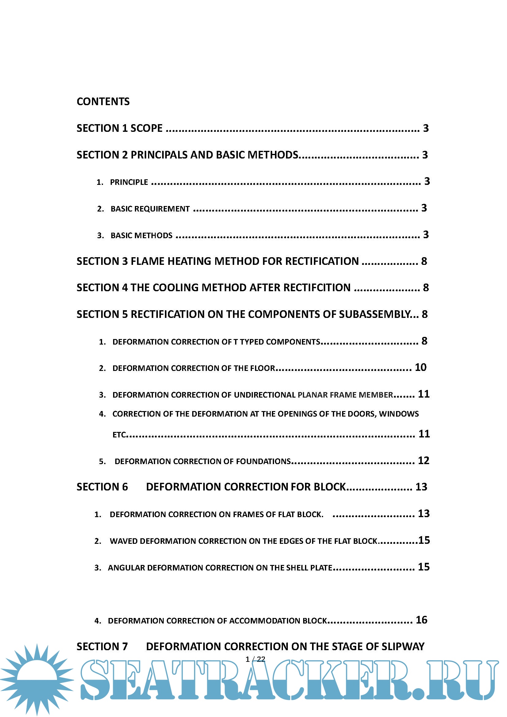 Year: 2017 Language: english Author: Shipyard management Genre: Handbook Format: PDF Quality: eBook Pages count: 23 Description: This technique stipulates the principle and basic method of flaming correction of hull, heating/cooling methods for deformation rectification. Deformation correction on the stage of small and medium group members; large and general group; block erection, and the considerations of deformation correction by flame. This process is suitable for the deformation of the ship structure in the process of flame cutting and welding. Deformation correction by flame is a way of eliminating the original deformation by heating on the local area of a metal and cause it to produce plastic deformation which is limited by the surrounded cold metal. The original deformation is therefore eliminated through the shrinkage deformation resulted in the cooling process of the steel.