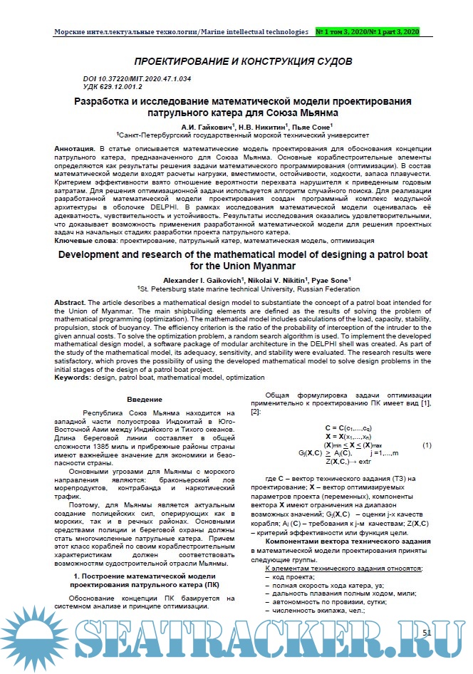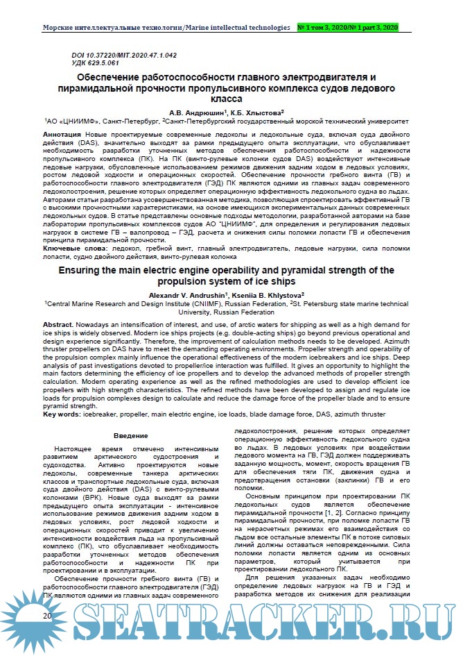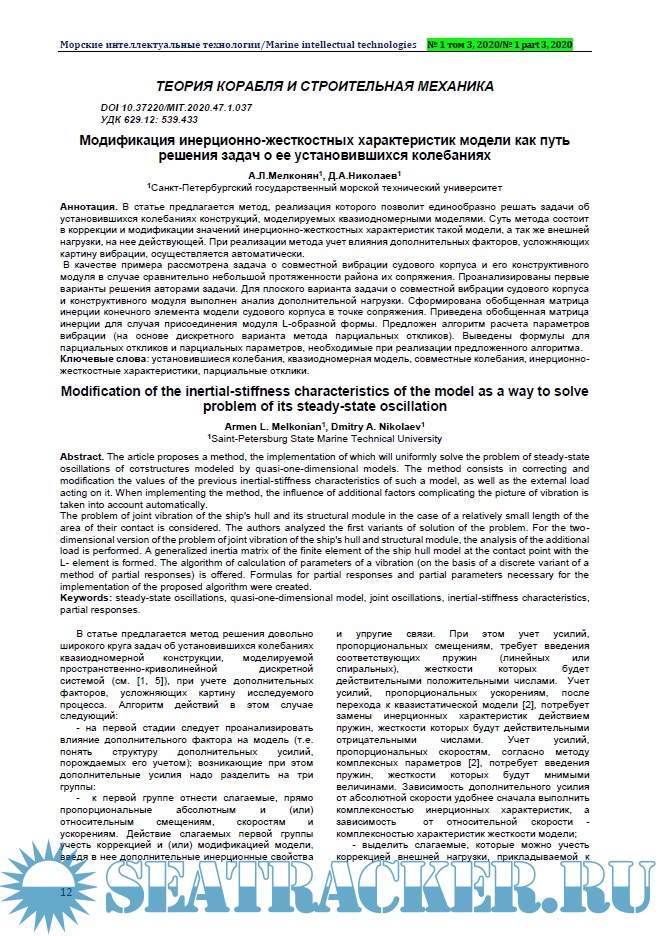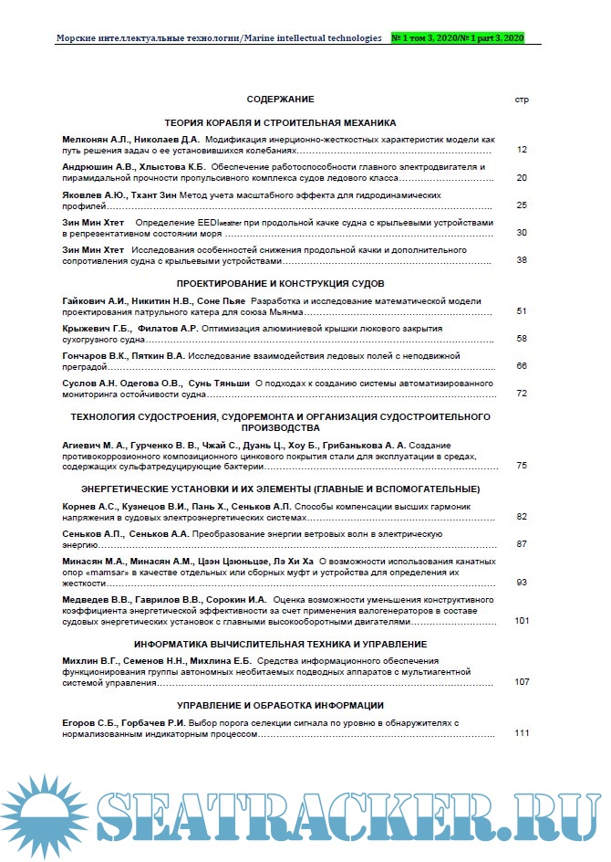 Морские интеллектуальные технологии 2020 №1 (47) Tом 3