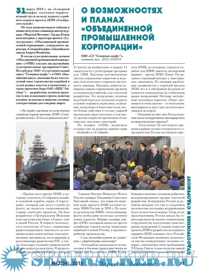Описание: Информационные, аналитические, научно-технические и исторические статьи по морской технике и технологиям, экологической безопасности судостроения и судоходства, освоению океана и шельфа, безопасности мореплавания, истории флота и мореплаваний, морскому бизнесу и праву.