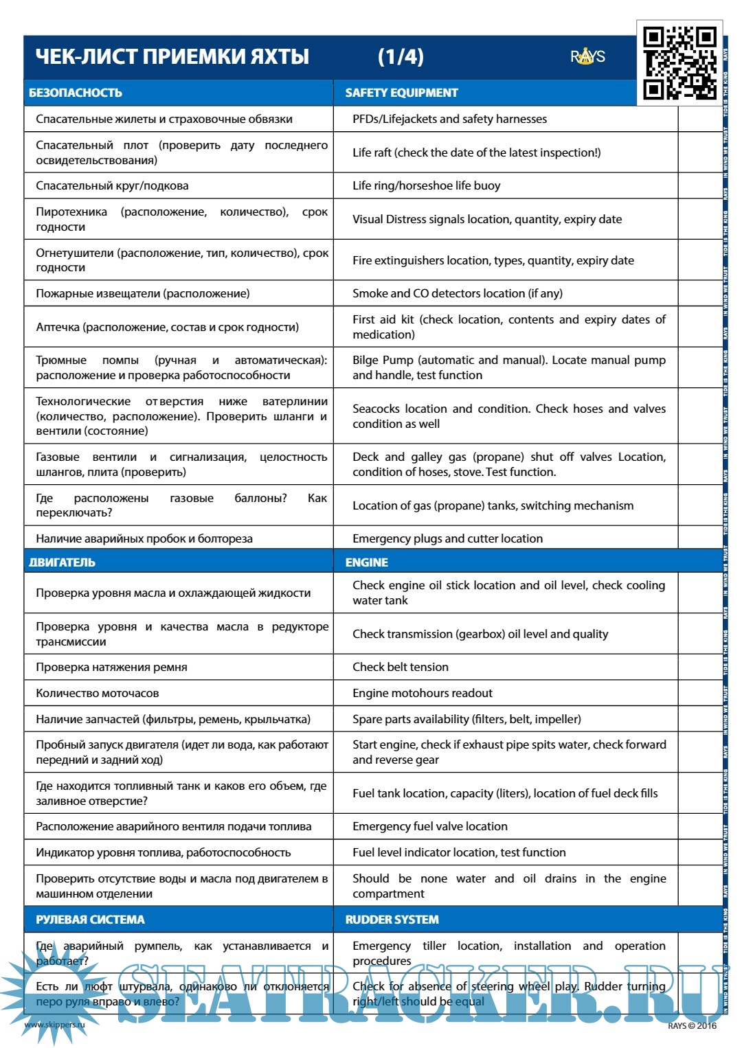 Описание: Чек-лист приёмки яхты RAYS на русском и английском языках.