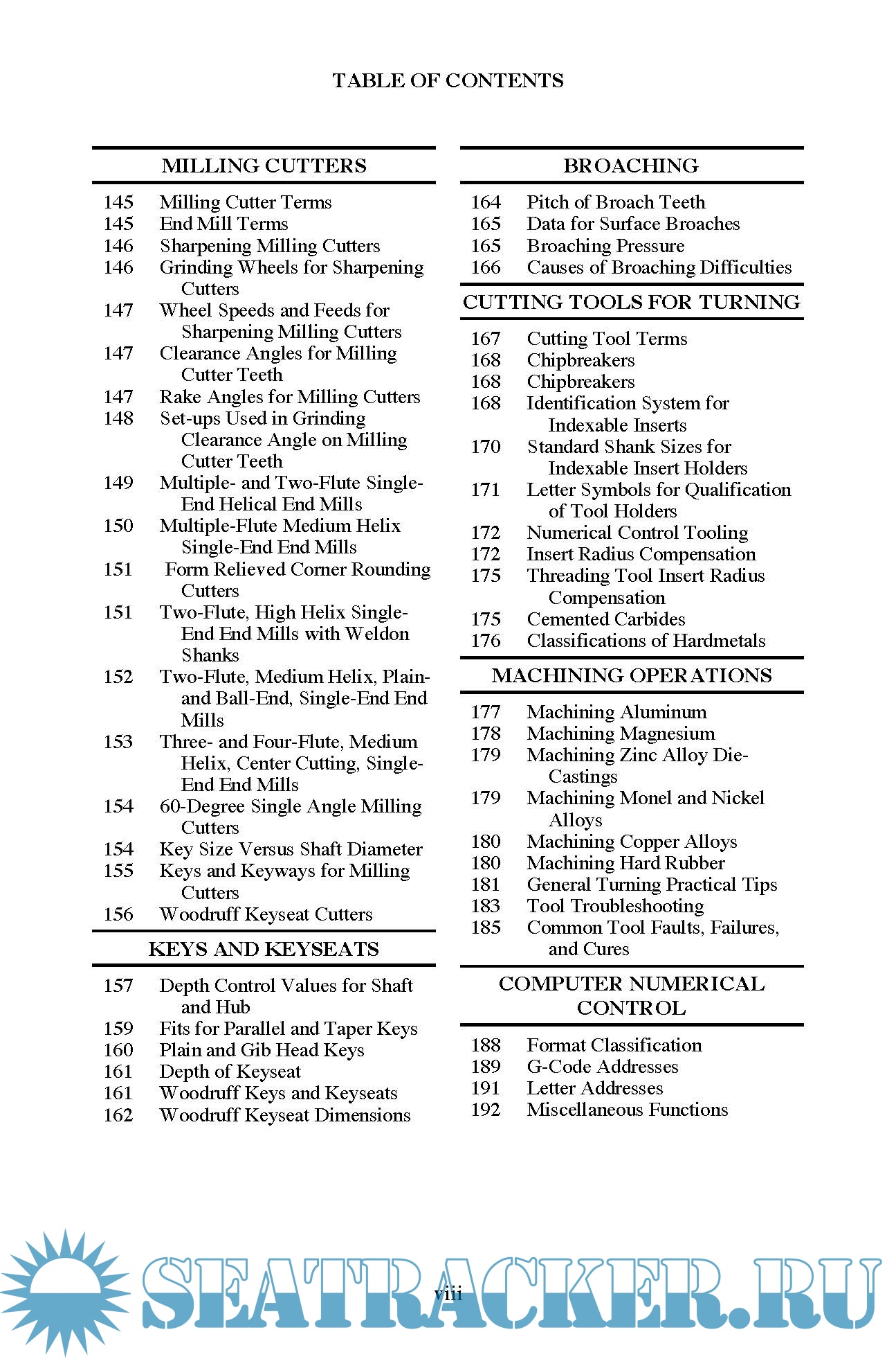 on manufacturing operations and theory should refer to Machinery’s Handbook.