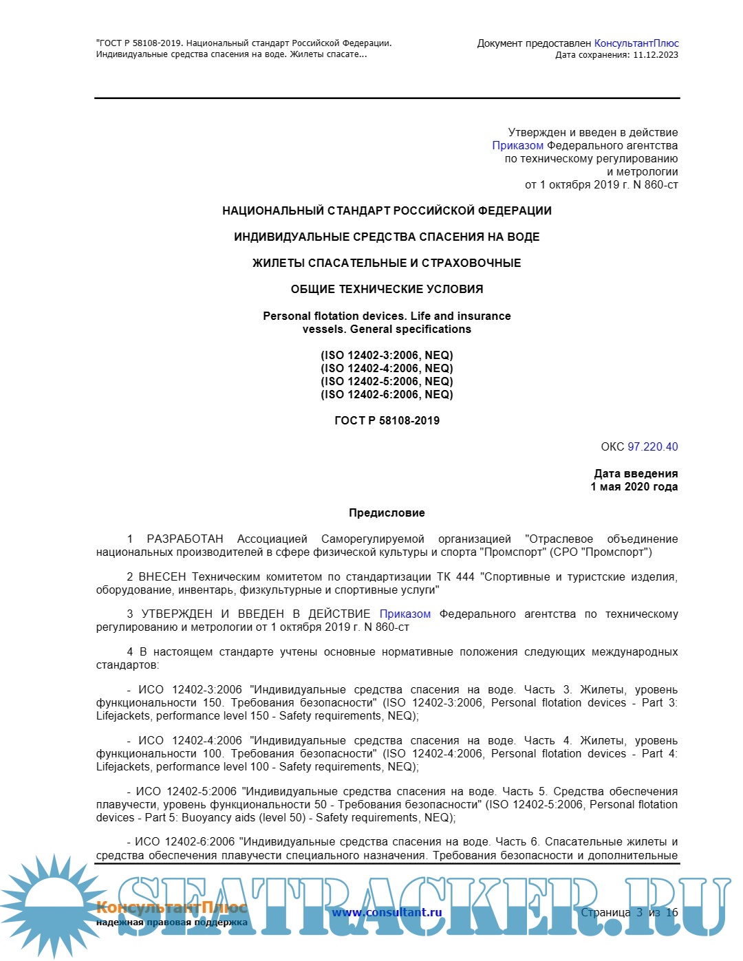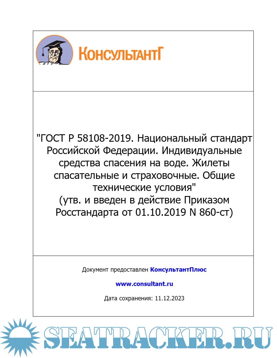 Описание: "ГОСТ Р 58108-2019. Национальный стандарт Российской Федерации. Индивидуальные средства спасения на воде. Жилеты спасательные и страховочные. Общие технические условия" (утв. и введен в действие Приказом Росстандарта от 01.10.2019 N 860-ст).