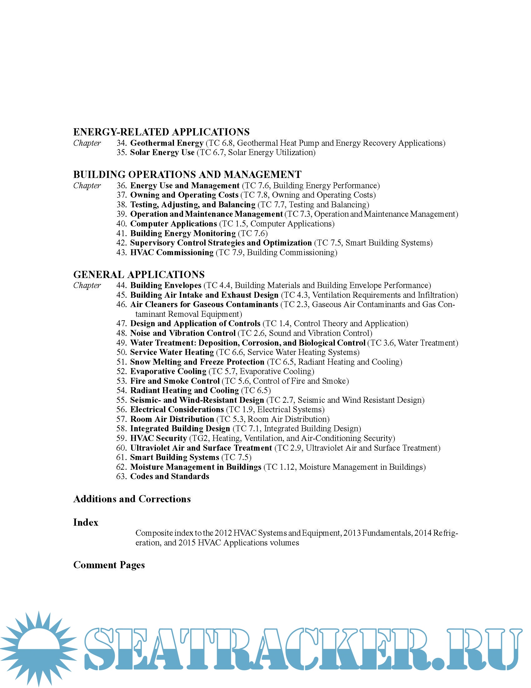 Year: 2015 Language: english Author: ASHRAE Genre: Handbook Format: PDF Quality: eBook Pages count: 1340 Description: The 2015 ASHRAE Handbook—HVAC Applications comprises more than 60 chapters covering a broad range of facilities and topics, written to help engineers design and use equipment and systems described in other Handbook volumes. Main sections cover comfort, industrial, energy-related, general applications, and building operations and management. ASHRAE Technical Committees in each subject area have reviewed all chapters and revised them as needed for current technology and design practice.