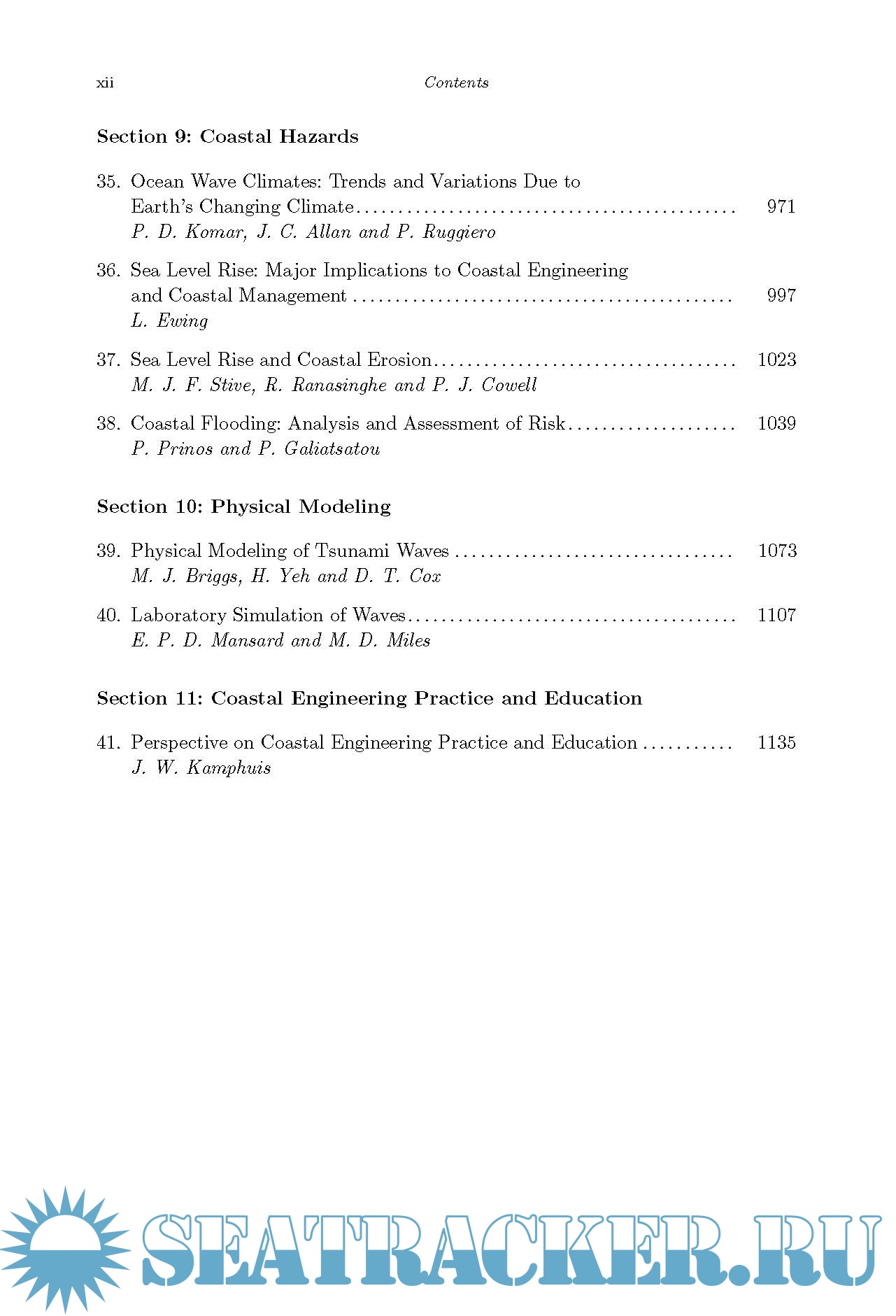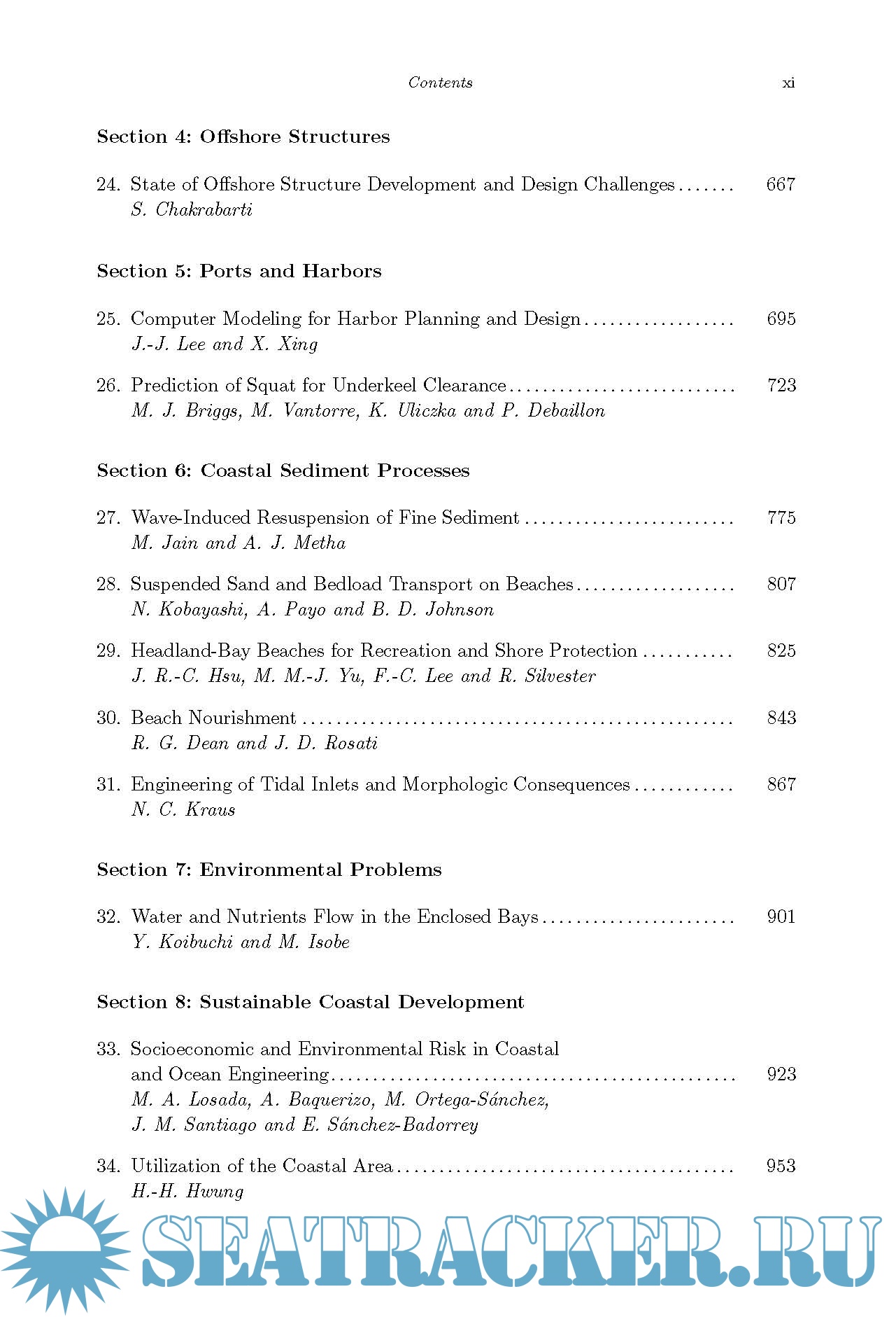 Year: 2010 Language: english Author: Young C Kim Genre: Handbook Format: PDF Quality: eBook Pages count: 1190 Description: Although coastal and ocean engineering is a very ancient field with the construction of Port A-ur near the mouth of the Nile in 3,000 BC, significant advances in this field have been made in the last several decades. The rise of interest in this field can be seen from the number of attendees by academics and practitioners in international conferences. The first International Conference on Coastal Engineering was held in Long Beach, California in 1950 with less than 100 people. When the same conference was held in San Diego, California, in 2006, over 1000 delegates attended. In the last several decades, the world has seen significant coastal and ocean engineering projects, one of which is the Delta Project in the Netherlands. This project was designed to shorten and strengthen the total length of coast and dykes washed by the sea by closing off the sea arms in the Delta region. Other noteworthy coastal engineering projects include the Kansai Airport Project in Japan and, in recent years, the construction of mobile barriers at inlets to regulate tides in the Venice Lagoon known as the Venice Project. Interest in coastal and ocean engineering has arisen in recent years as humankind experiences coastal disasters that derive from coastal storm, hurricane and coastal flooding and seismic activities such as tsunamis, and the impacts of climate change which result in sea-level rise. The tsunami activity in Sumatra in December 2004 affected countries throughout the Indian Ocean and resulted in the loss of thousands of lives. Hurricane Katrina in New Orleans also claimed many lives with property damage exceeding $63 billion. Global warming and sea-level rise will affect shoreline retreats, inundate low coastal areas, damage coastal structures, and accelerate beach erosion. The need for better understanding of our coastal and ocean environment has risen considerably in recent years.