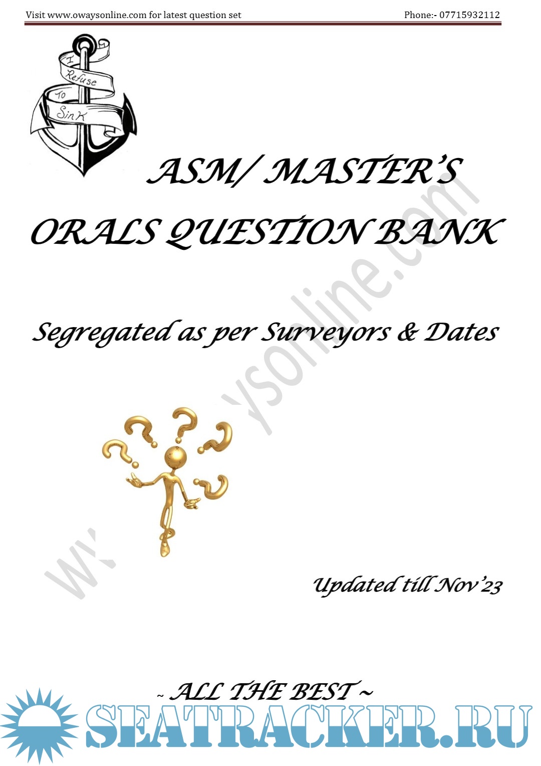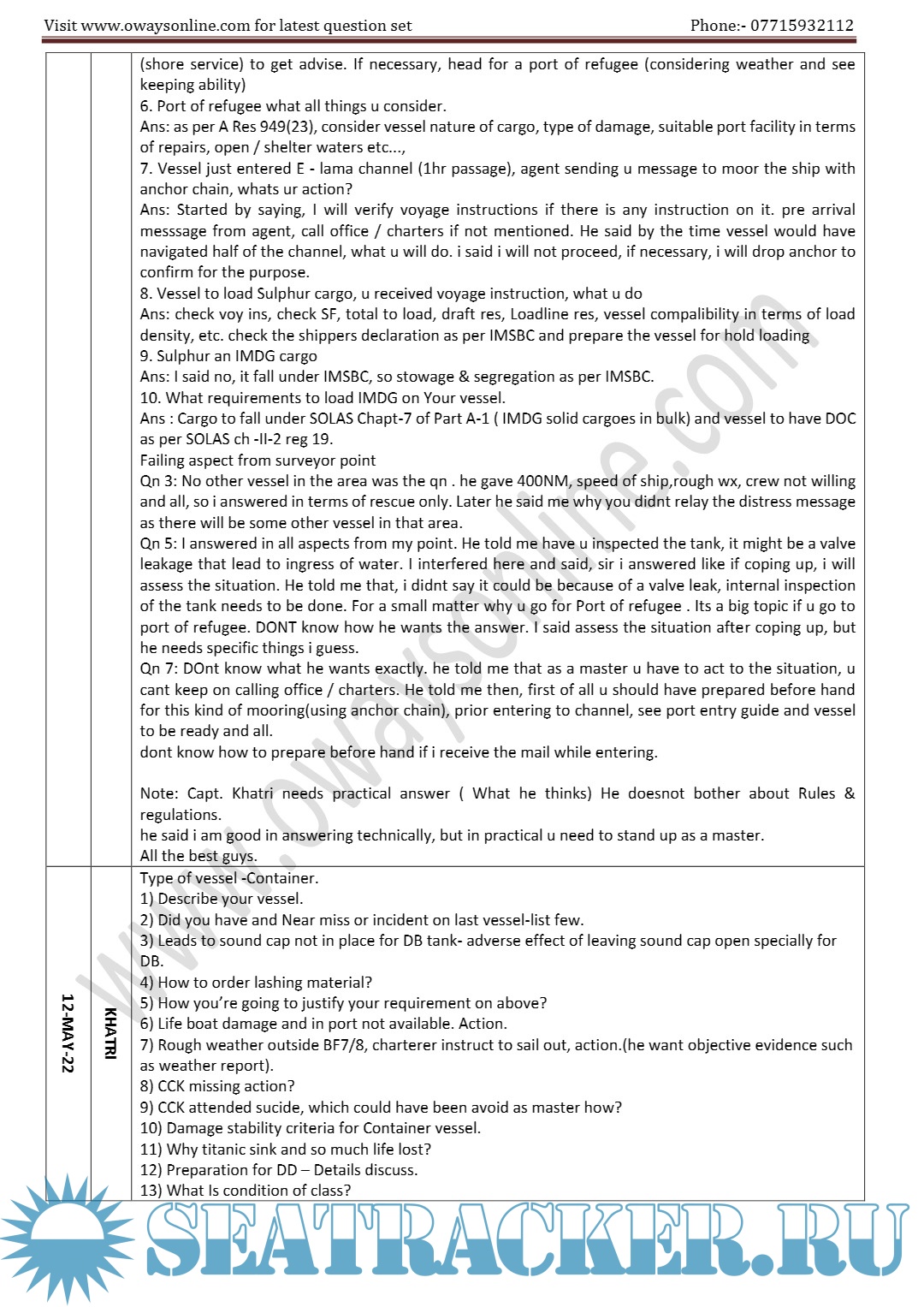 Description: Orals Question Bank for ASM (Advanced Shipboard Management) / Master's Mercantile Marine Department (MMD), India Examinations.