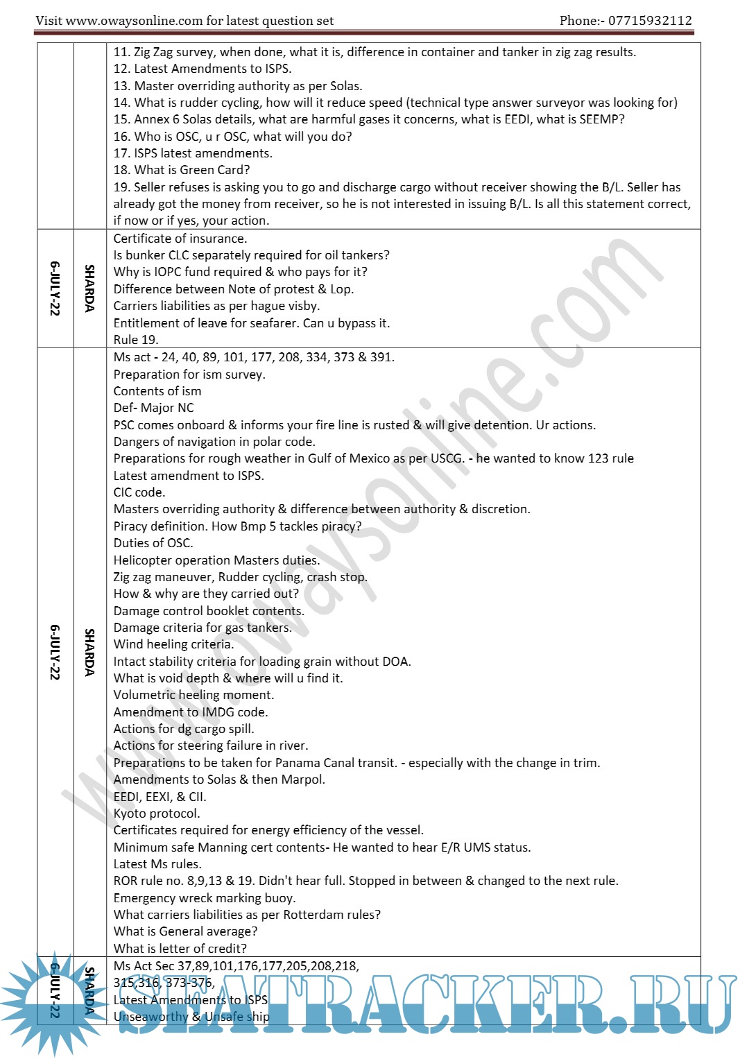 Orals Question Bank (November 2023) for ASM (Advanced Shipboard Management) / Master's Mercantile Marine Department (MMD), India Examinations