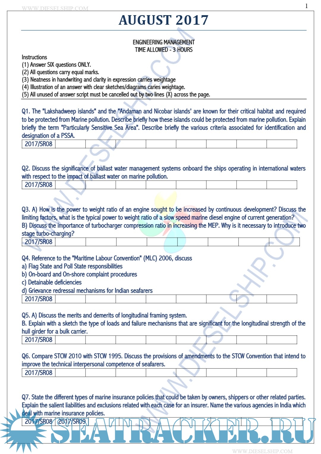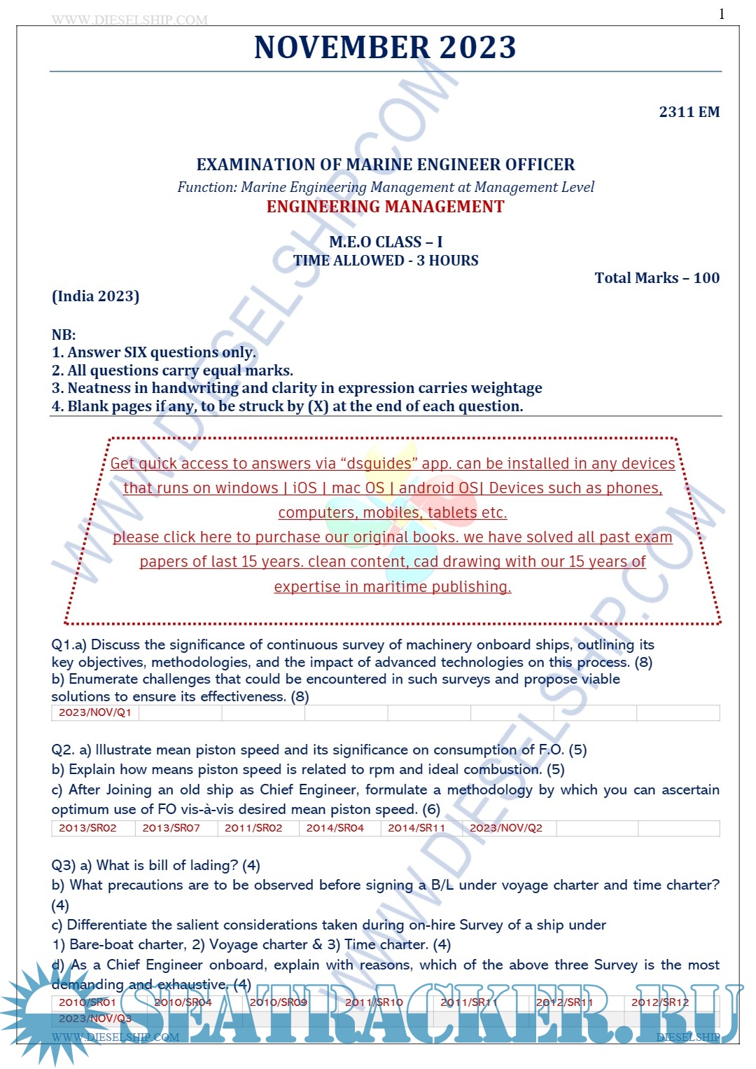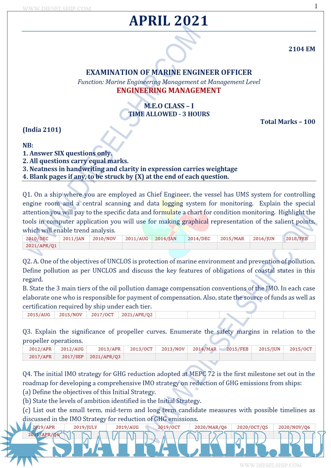 Description: M.E.O. Class I Question Paper set for Mercantile Marine Department (MMD), D.G. Shipping India Exams.