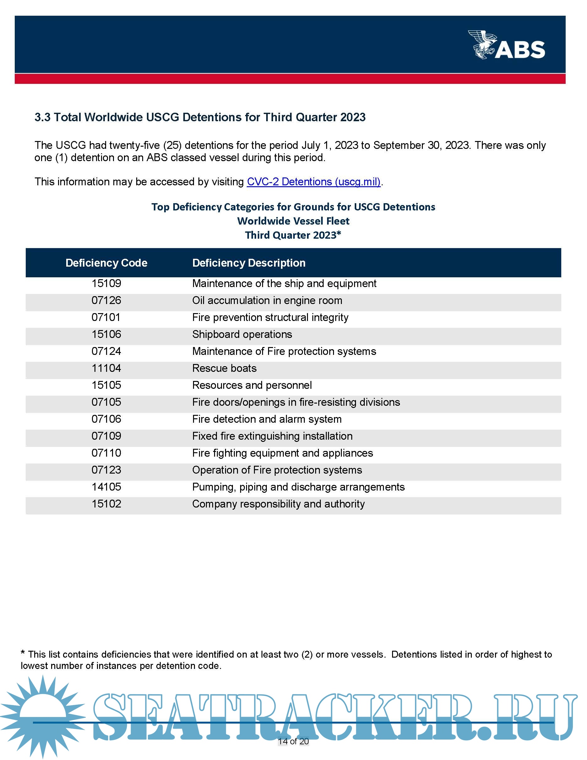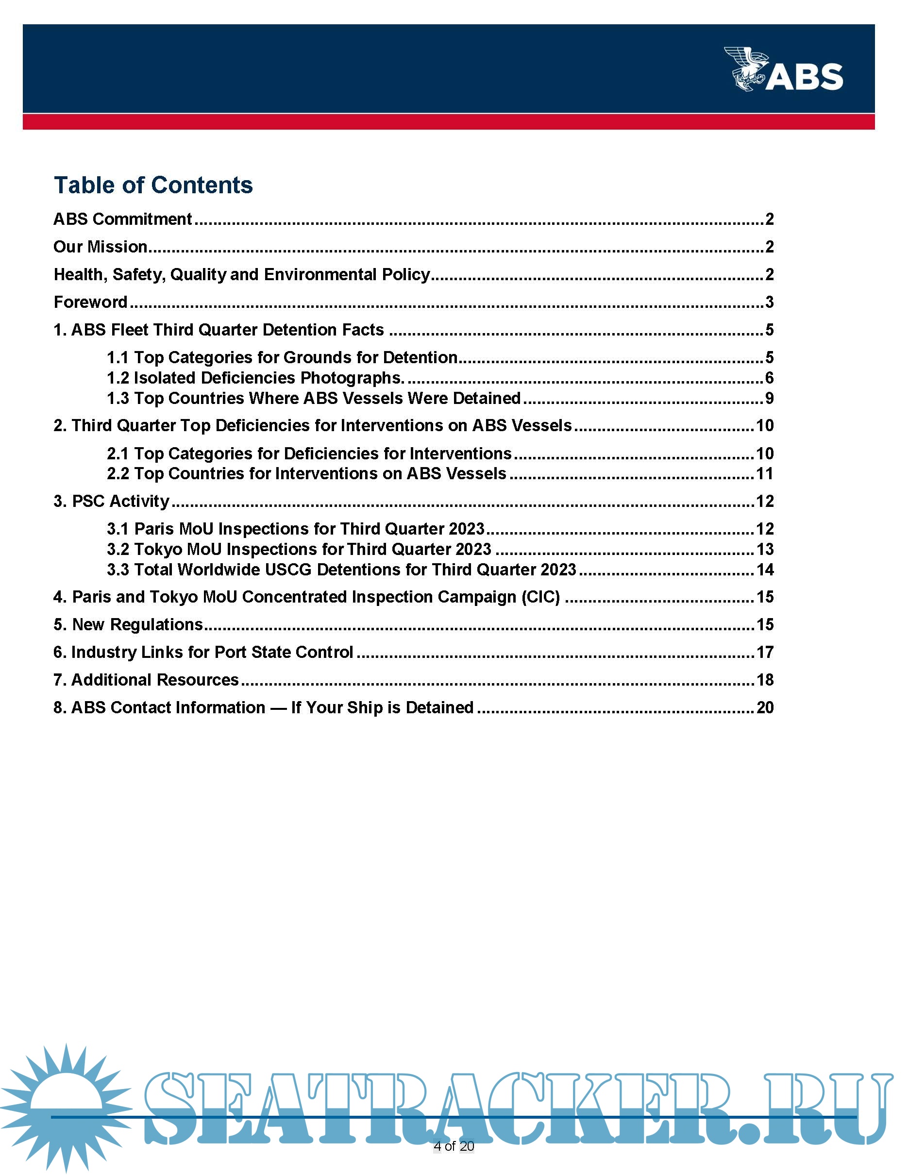 Description: This ABS Quarterly Report on Port State Control (PSC) provides information to owners on deficiencies identified on ABS vessels during inspections carried out by the various PSC regimes globally during the 3rd quarter of 2023.