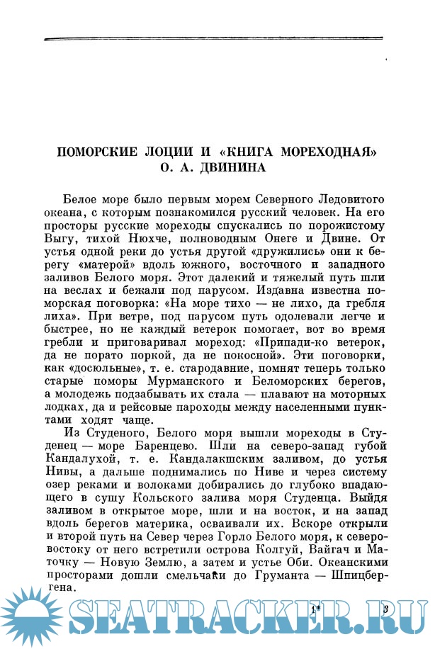 Описание: В книге, автором которой является старейший архангельский краевед, содержатся интересные сведения о русском поморском мореходстве XVIII в., о маршрутах плаваний поморов, достигавших на своих судах берегов Северной Норвегии, Новой Земли, Шпицбергена. Публикуется текст найденной автором рукописной лоции О. А. Двинина (конец XVII — начало XVIII вв) — замечательного памятника поморского мореходства.