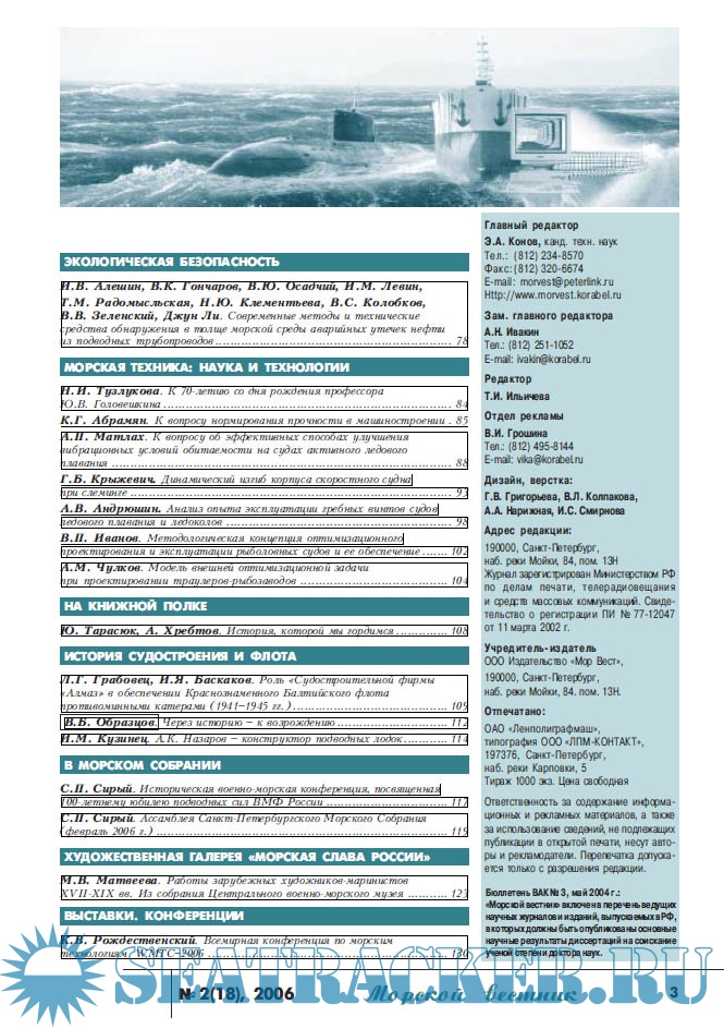 Описание: Информационные, аналитические, научно-технические и исторические статьи по морской технике и технологиям, экологической безопасности судостроения и судоходства, освоению океана и шельфа, безопасности мореплавания, истории флота и мореплаваний, морскому бизнесу и праву.